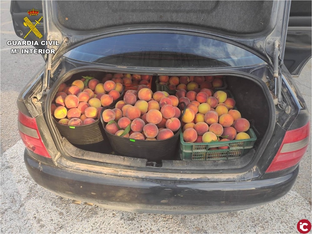 Por otro lado, el pasado día 18 de agosto, se identificaron a dos vehículos durante un control preventivo de la Guardia Civil en Pinoso, que portaban una carga de 700 kilos de melocotones. Las cuatro personas que iban en ellos no pudieron asegurar su procedencia, por lo que se procedió a su incautación inmediata.