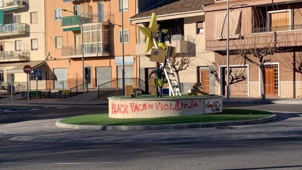 El poble de Ibi es va despertar el passat dia de reis amb unes pintades en la rotonda dels Paqueters Reials acusant la tradició de racista.