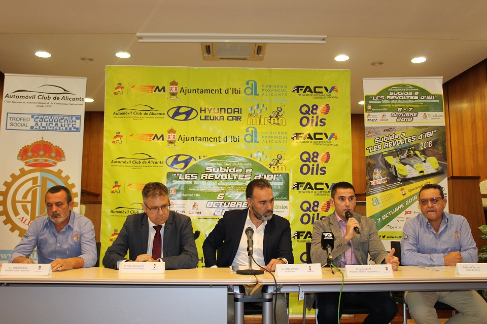 El Automóvil Club de Alicante (ACA) organiza, del 5 al 7 de octubre, la Subida a les Revoltes d’Ibi Trofeo Villa del Juguete-Costa Blanca. La prueba se presentó ayer por la tarde, en el Salón de Plenos del Ayuntamiento local, donde todos apostaron por el éxito de competición y la continuidad de la misma en el futuro.