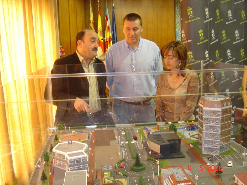 Hoy se ha presentado la maqueta de la futura zona de ocio. En el acto han estado presentes la alcaldesa de Ibi, Mayte Parra, el concejal de Urbanismo, José Campoy y D. Fernando Vilaplana, urbanizador.