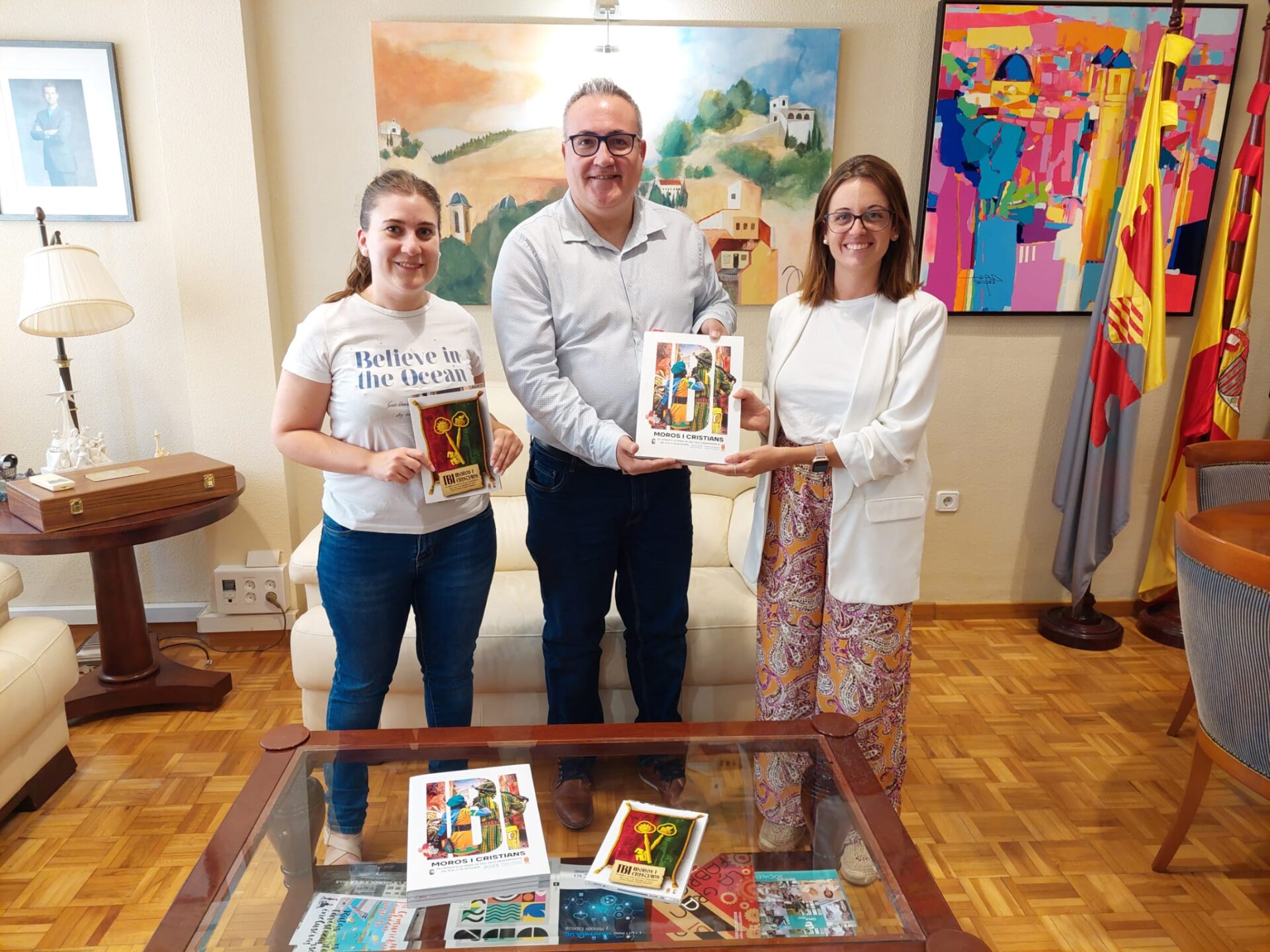 Pel matí, l’alcalde d’Ibi, Sergio Carrasco Martínez, i la vicealcaldessa d’Ibi, Aitana Gandia Vidal, van rebre la revista de mans de la presidenta de la Comissió de Moros i Cristians, Eva Galera Verdú.
