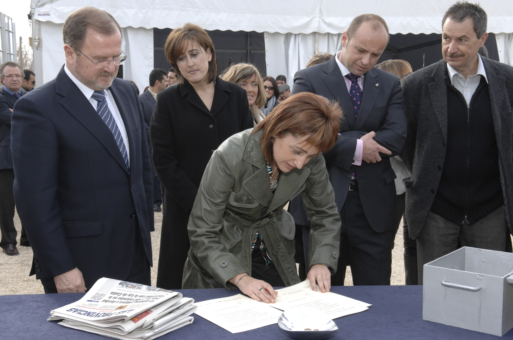 El Conseller de Educación, D. Alejandro Font de Mora, junto con el Director General de Régimen Económico, D. Alejandro Bañares vistan Ibi para poner la primera piedra del futuro instituto Fray Ignacio Barrachina. La alcaldesa fue acompañada por su equipo de gobierno y allí estuvieron presentes diversos colectivos, tales como AMPAS, alumnos, profesores y vecinos de la localidad.