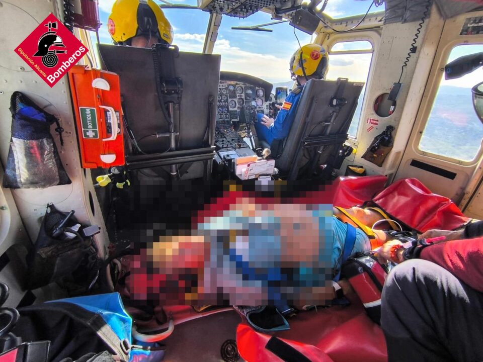 Tras estabilizarla, la víctima fue evacuada en helicóptero hasta el Parque de Bomberos de San Vicente del Raspeig, donde fue transferida a una unidad del SAMU para continuar con la asistencia sanitaria.