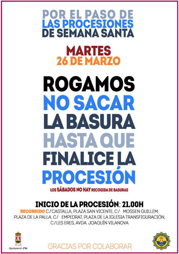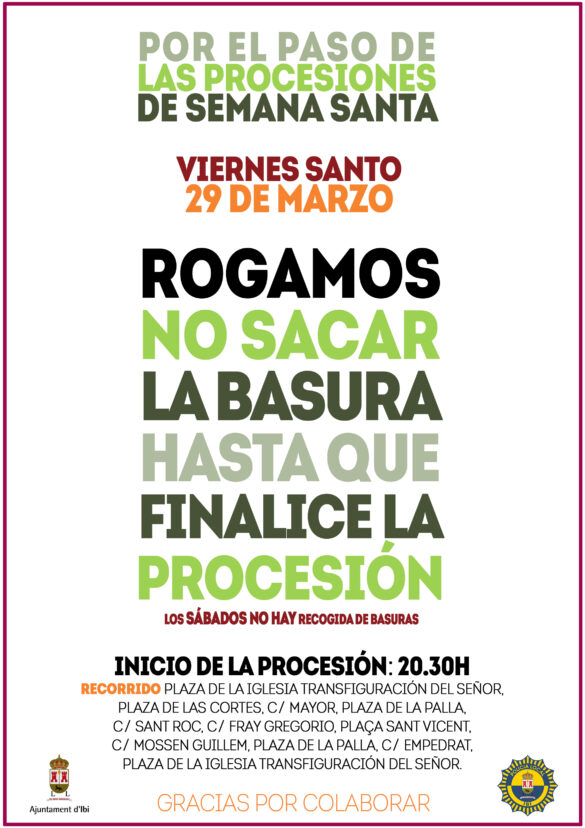 ¿Sabes qué días debes sacar la basura esta Semana Santa en Ibi?