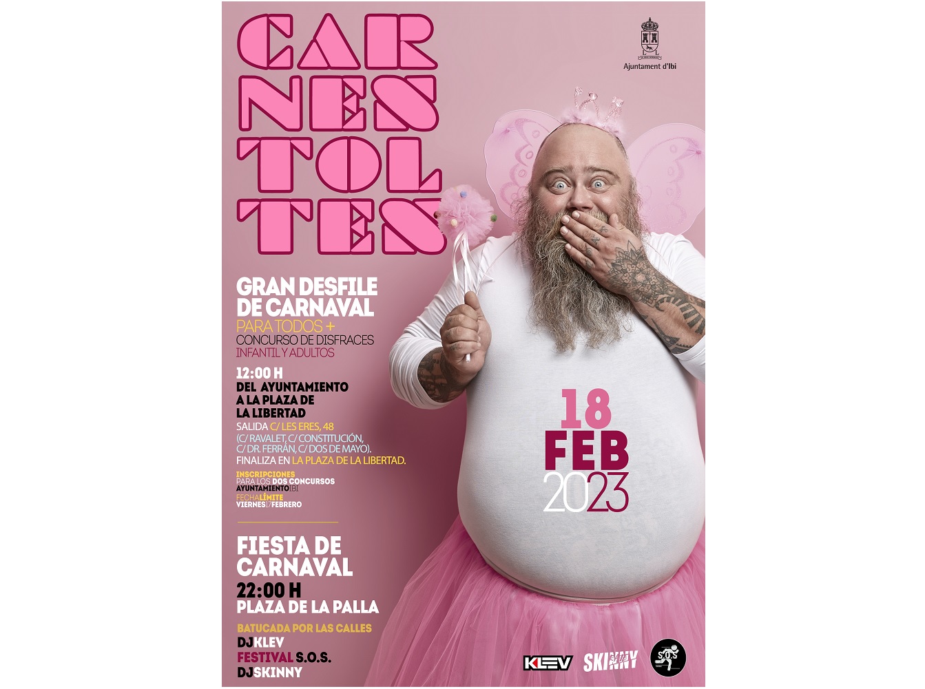 El Ayuntamiento de Ibi organiza, para el sábado 18 de febrero, el Carnaval 2023 con un gran desfile para todos los públicos durante el día y Fiesta de Carnaval por la noche. La localidad se llenará de música, color y ritmo para celebrar, un año más, un divertido día de disfraces.