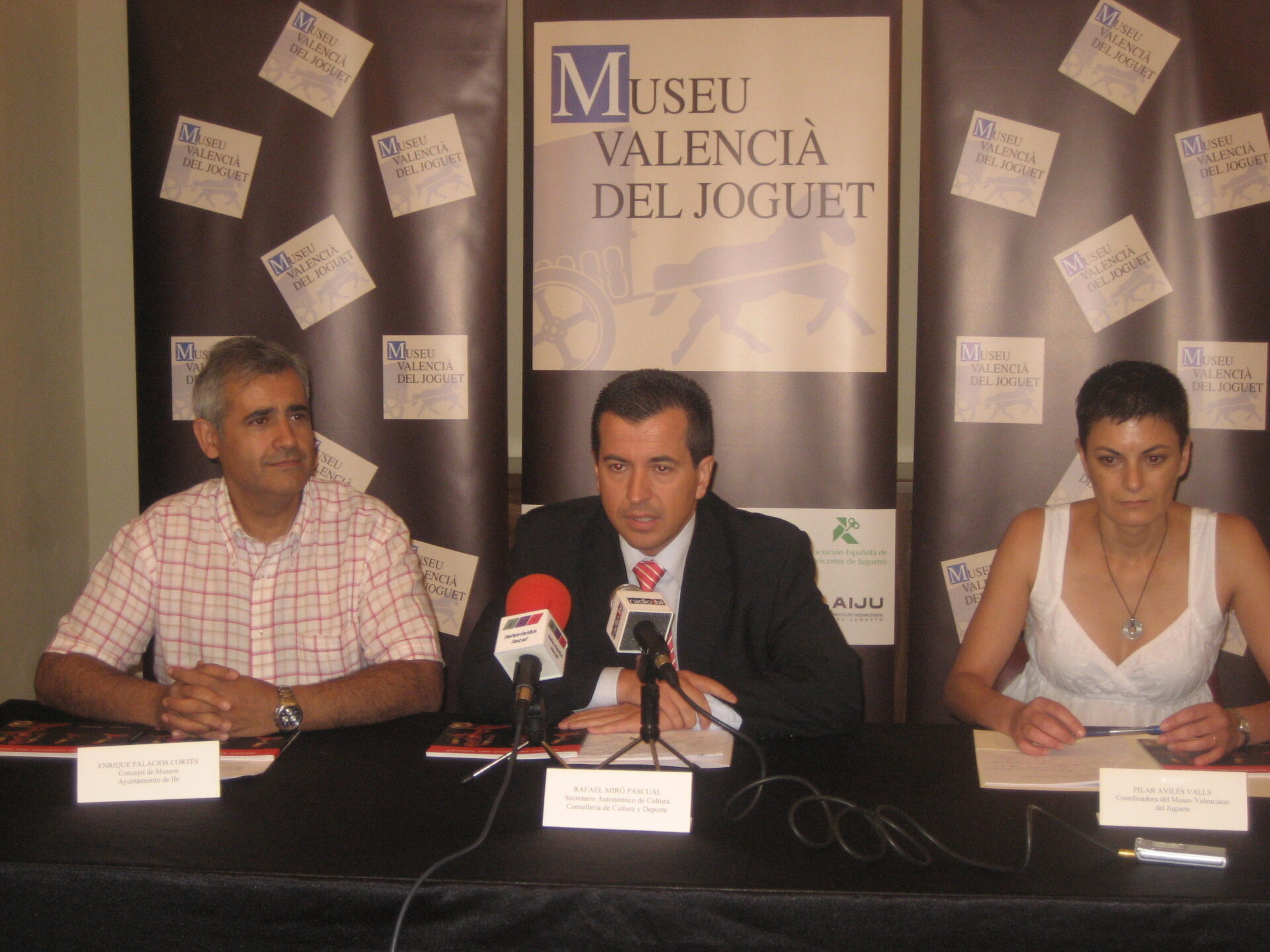 El Secretario Autonómico de Cultura y Presidente, por delegación, de la Fundación Museo Valenciano del Juguete, Rafael Miró; el Concejal de Museos del Ayuntamiento de Ibi, Enrique Palacios, y la Coordinadora del Museo, Pilar Avilés, presentaban en rueda de prensa el nuevo catálogo-guía de esta entrañable institución valenciana ubicada en Ibi.