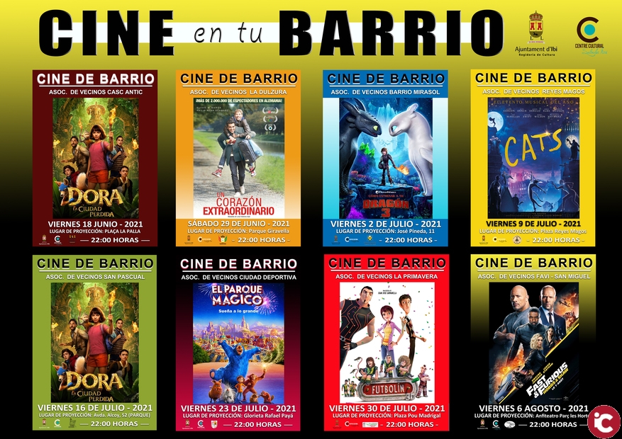 Esta misma semana comienzan las tan esperadas sesiones de cine gratuito al aire libre, los viernes, a las 22:00 h. Irán rotando por cada uno de los barrios de la localidad y a ellas está invitada toda la ciudadanía ibense. El Casco Antiguo proyectará Dora. La Ciudad perdida, el viernes 18 de junio, en la Plaza de la Palla. El sábado, 29 de junio, La Dulzura proyectará Un corazón extraordinario, en el Parque Giravella.