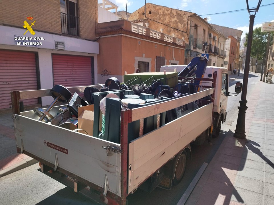 La colaboración del Ayuntamiento de Aspe fue necesaria para trasladar todos estos objetos a las dependencias policiales y posteriormente devolverlos a su legítimo dueño.
