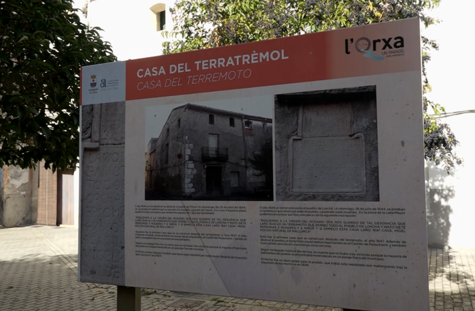 En 1644 l’Orxa quedava destruïda per un terratrèmol. Un «diumenge 26 de juliol» de 1644, un terratrèmol va destruir tos el poble de L’Orxa, causant set morts. Compten els majors que no va haver-hi més víctimes perquè tot el poble es trobava berenant en un paratge fora del poble. Una història que situa al municipi en el seu renaixement com a vila. En 1644, L’Orxa torna a nàixer.
