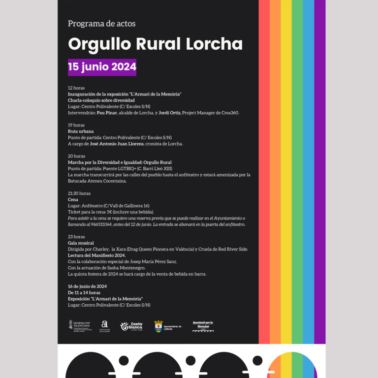 El pròxim 15 de juny l’Orxa celebrarà el dia de l’Orgull Rural LGTBIQ+. Una jornada que arrancarà a les 12 amb la inauguració de l’exposició «L’Armari de la Memòria» en el Centre Polivalent.