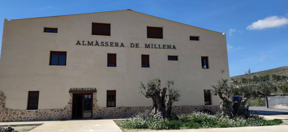 Visitem l’almàssera de Millena, per a parlar amb alguns dels seus responsables i productors d’oli dels diferents tipus d’oli que elaboraren: tenen dos tipus l’ecològic amb denominació i marca pròpia, i AOVE. També en aquesta almàssera es pot trobar la seua botiga eco amb molts bons productes.