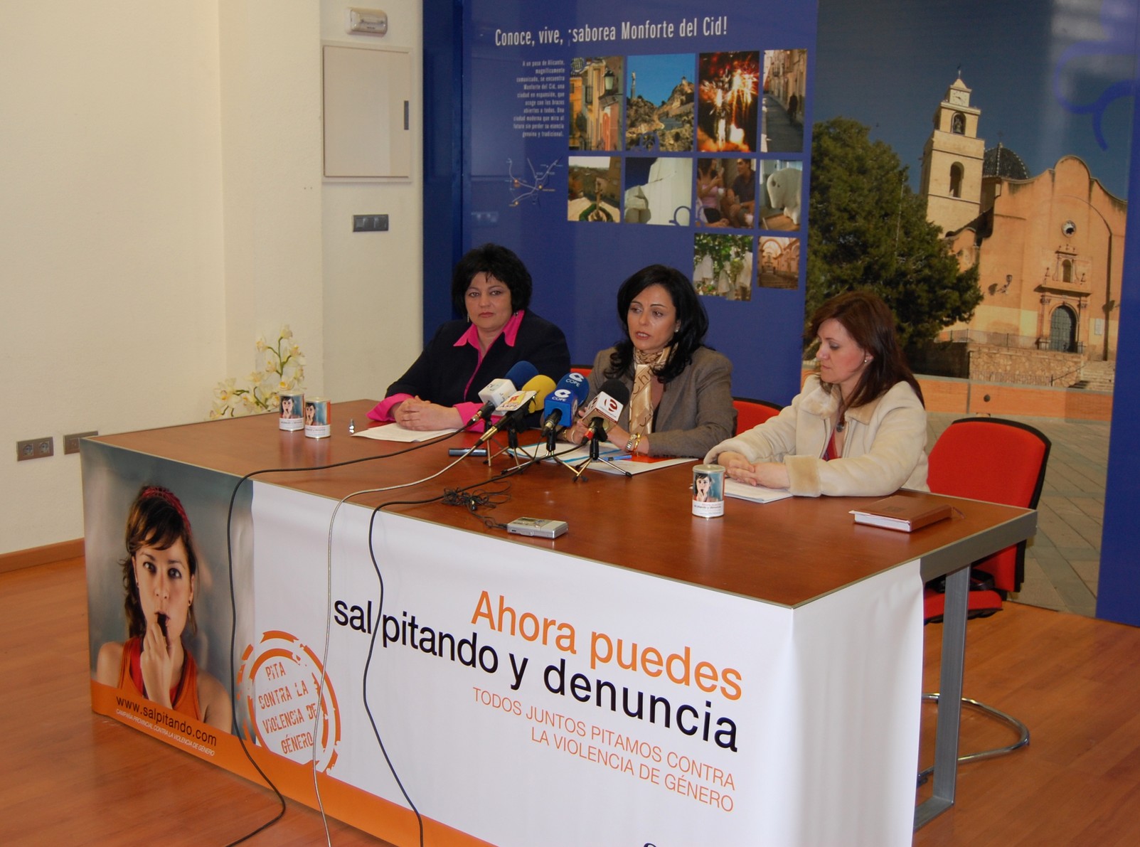 La alcaldesa de Monforte del Cid, Antonia Cervera, ha comparecido en Rueda de Prensa junto a la Diputada Provincial del Área de la Mujer, María Asunción Prieto y la concejala de Bienestar Social, Remedios Agulló, para informar de la campaña en protesta contra la violencia de género. La campaña pretende lograr la mayor implicación social posible y generar espacios de protesta contra esta lacra.