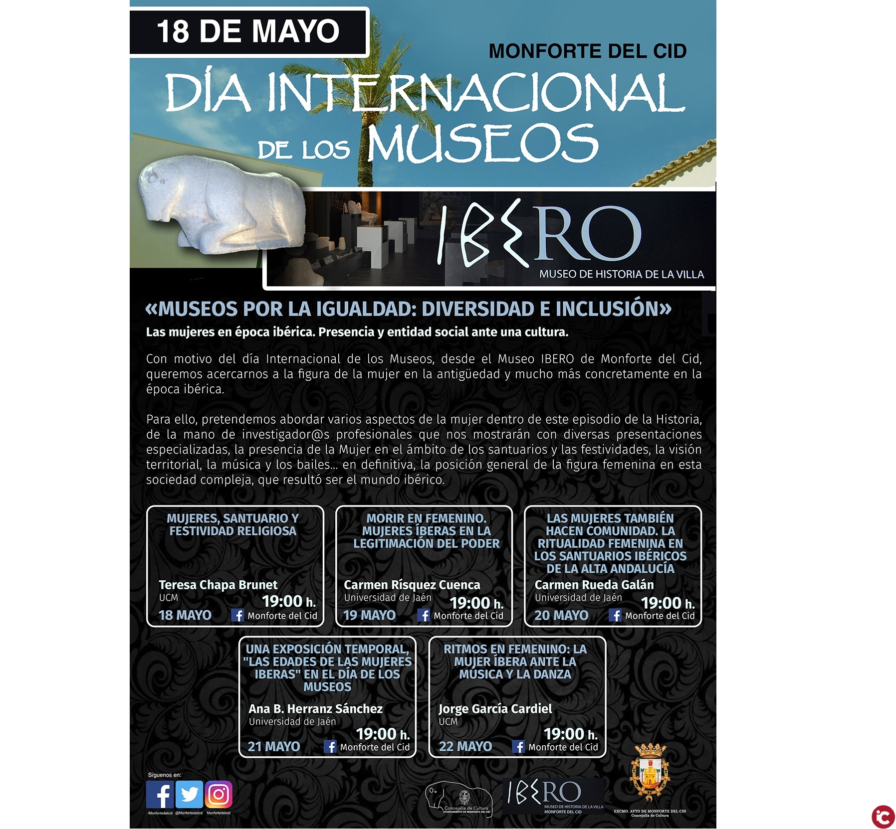 Todo el mundo sabía que “El día Internacional de los Museos” tendría este 2020 como temática «Museos por la igualdad: diversidad e inclusión». Lo que no sabíamos por el momento eran las temáticas de las microcharlas que ofrecía la Concejalía de Cultura desde Museo Ibero. Aquí les traemos la programación y sus temáticas: