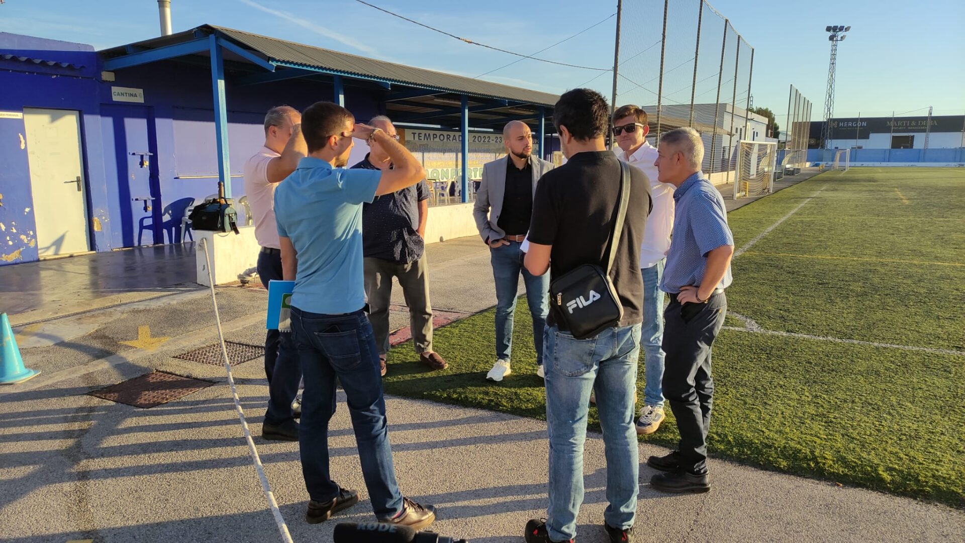 El alcalde Juan José Hernández, acompañado del concejal de deportes, José Joaquín Salas, han asistido a la firma del acta de replanteo de la obra de sustitución del césped artificial del Campo de Fútbol. Tras la firma, esta misma mañana han comenzado los trabajos de esperada obra de renovación de un césped que ya contaba con 17 años de vida.