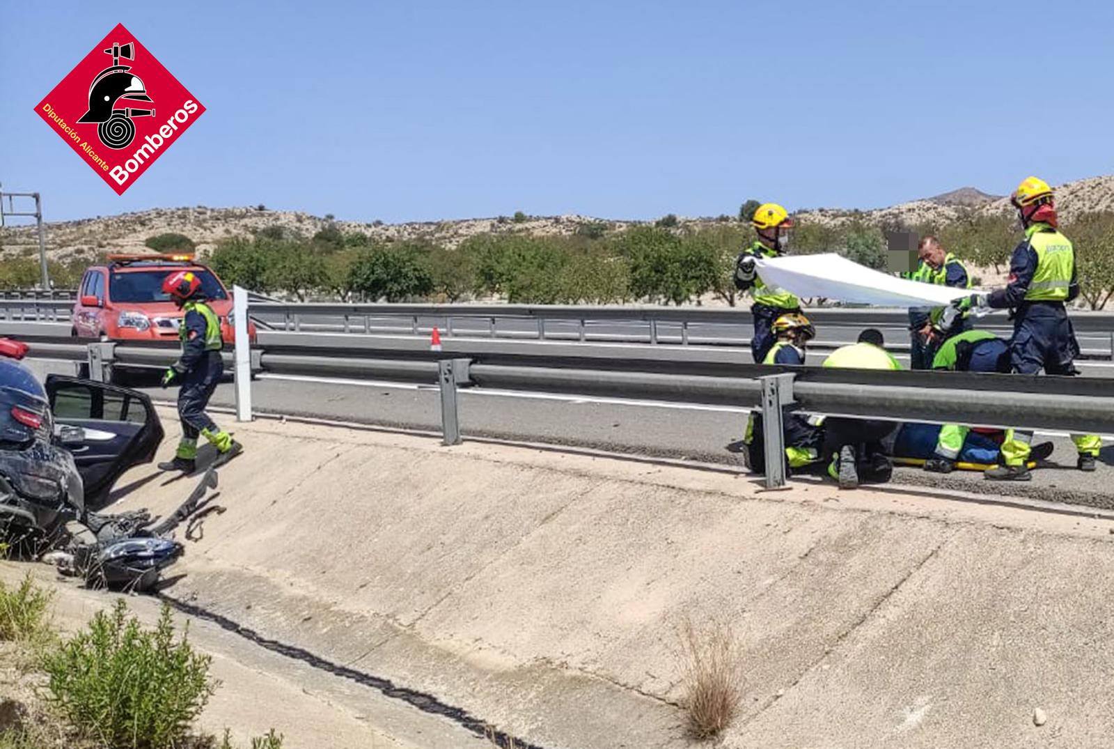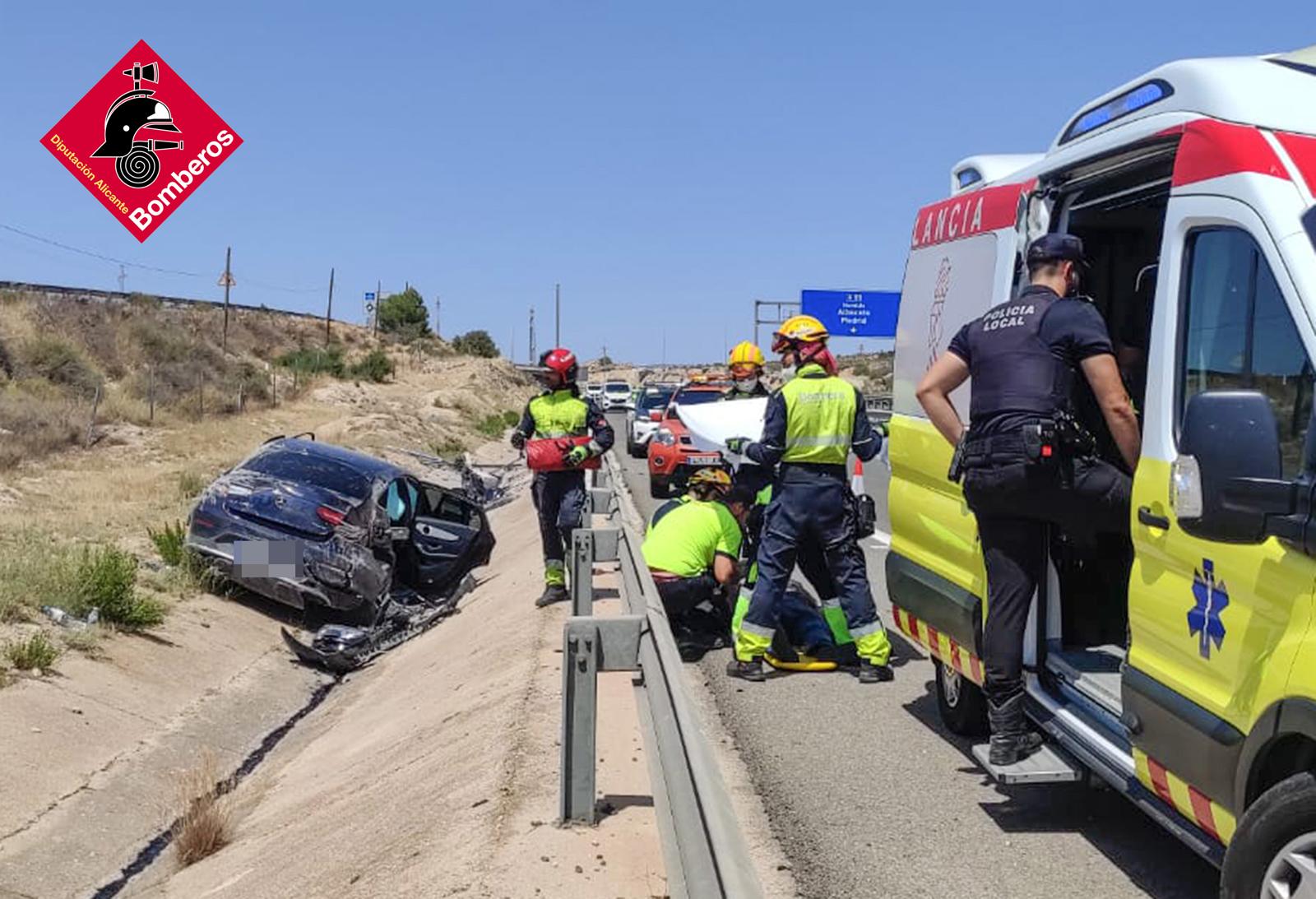 El siniestro se produjo alrededor de las 12:45 horas, cuando el conductor del vehículo perdió el control del mismo, saliéndose de la vía y volcando lateralmente. A consecuencia del impacto, el conductor quedó atrapado y fue necesaria su excarcelación por parte de los efectivos del Consorcio Provincial de Bomberos de Alicante.