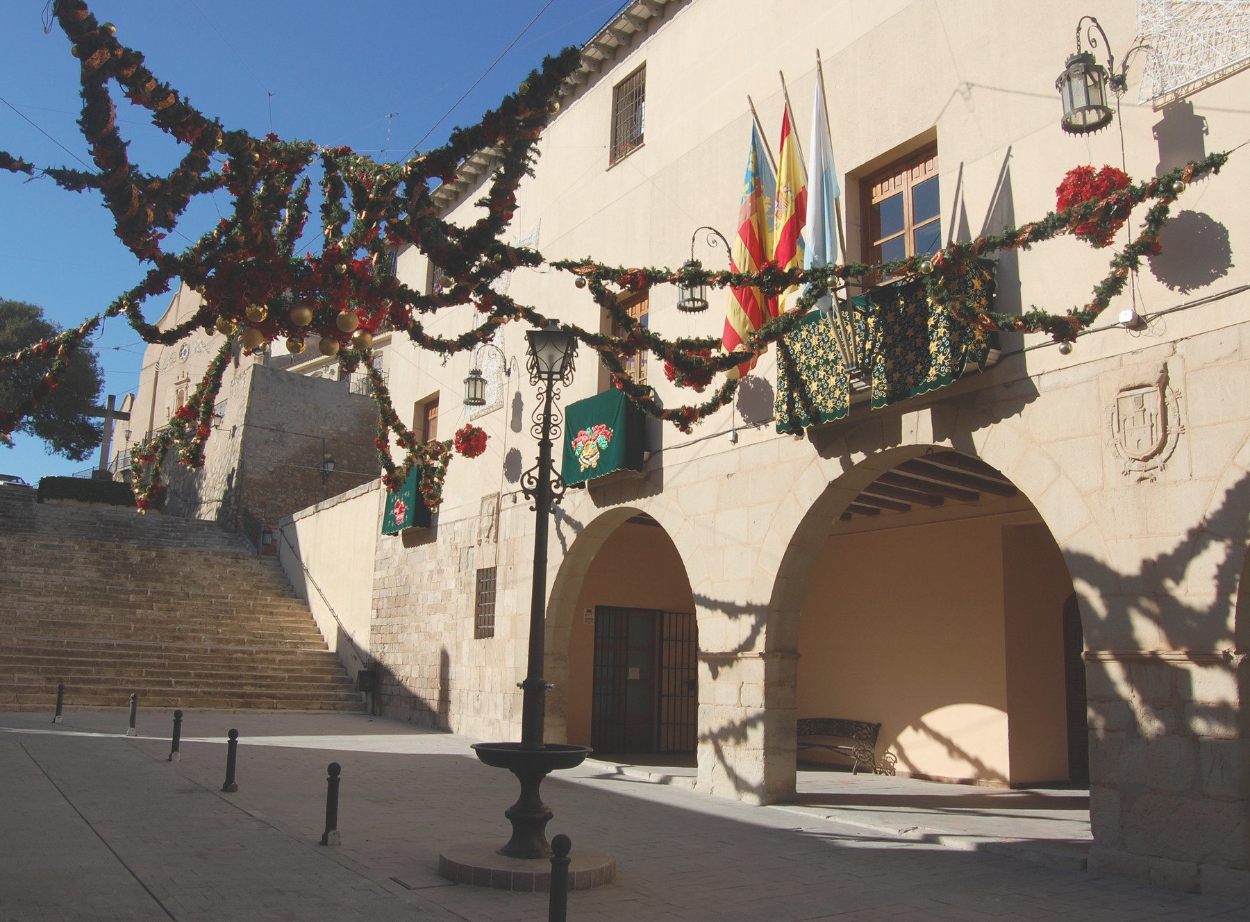 El Ayuntamiento de Monforte del Cid ha sido decorado con motivos navideños ante la proximidad de las fiestas. En la primera planta se ha puesto un bonito belén y un árbol de Navidad con sus correspondientes adornos y se han colocado pinos y las tradicionales flores de Pascua.