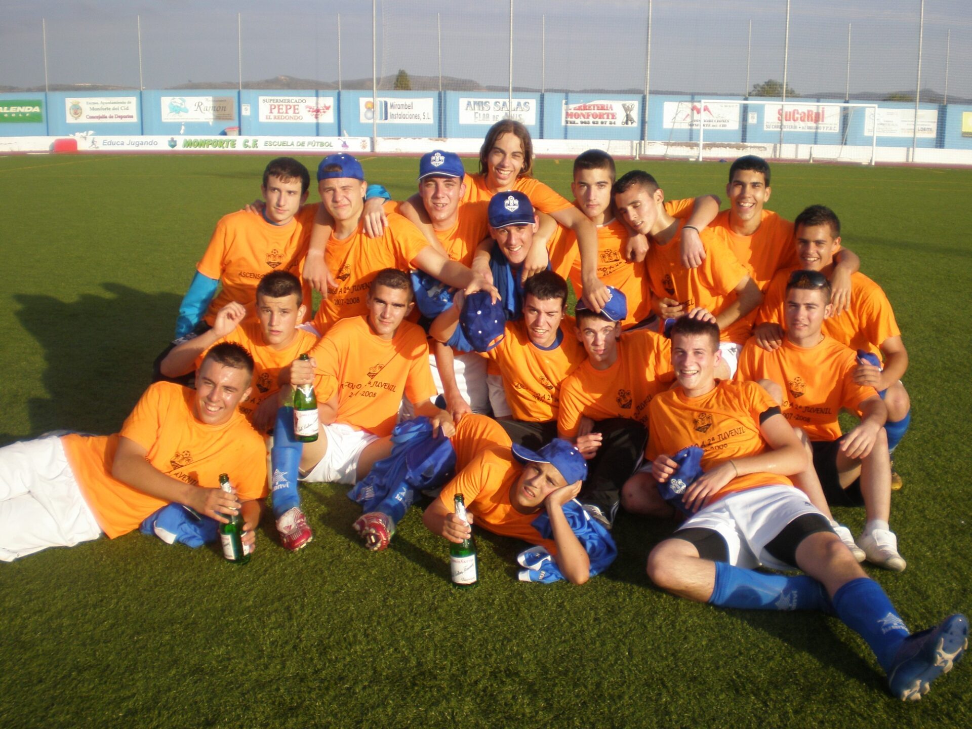 El equipo juvenil del Monforte C.F consiguió el pasado sábado el ascenso a segunda regional tras imponerse en Monforte al Bocairent por un contundente doce a cero. Los goles fueron obra de Carlos Cerdán, en cuatro ocasiones; José Ramón, en tres; Lara marcó dos y Sito y Álvaro uno cada uno, además el Bocairent se anotó uno en propia puerta.