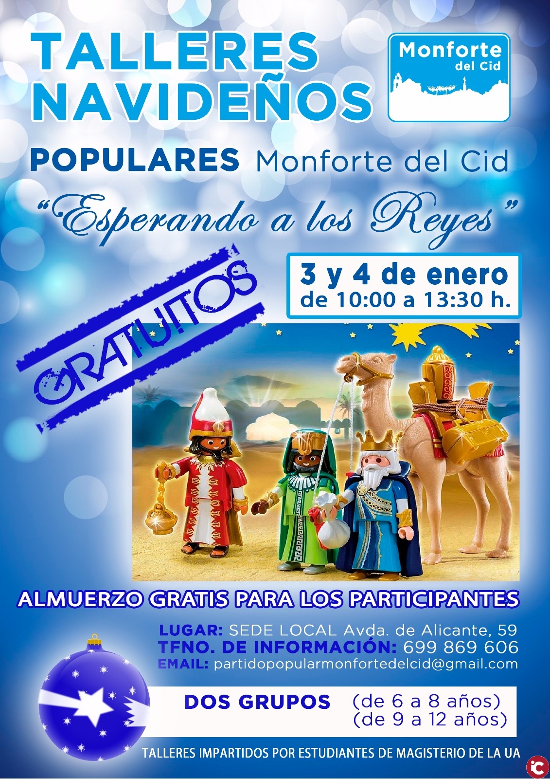 El Partido Popular de Monforte del Cid celebra por segundo año consecutivo talleres navideños dirigidos a niños de entre 6 y 12 años con el fin de que estos pasen unos días divertidos y ayudar al sus familiares con un rato de respiro en época de vacaciones.