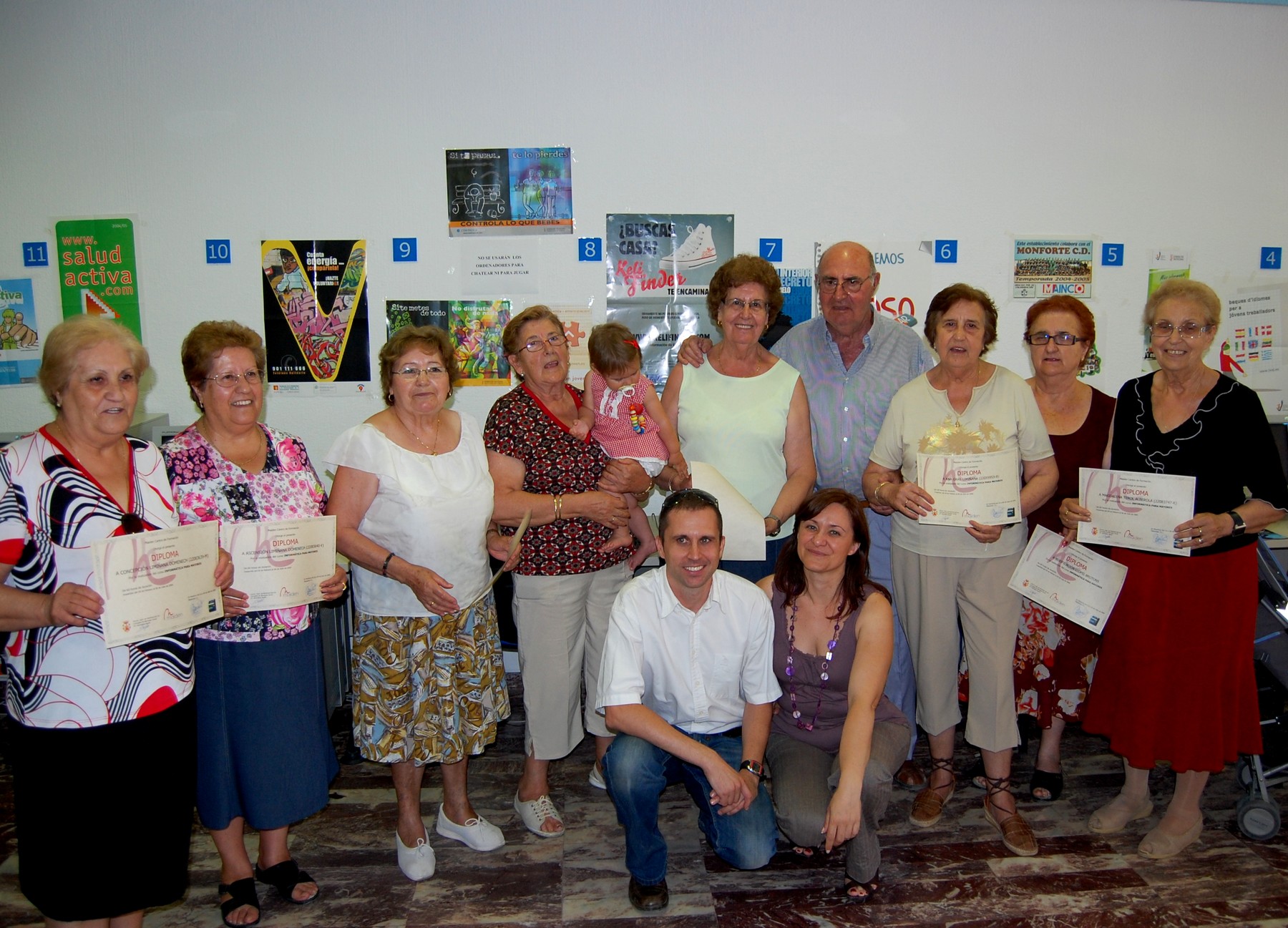 La concejala de Bienestar Social del Ayuntamiento de Monforte del Cid, Remedios Agulló ha hecho entrega hoy en el Centro de Información Juvenil de los diplomas a los alumnos de la Asociación de la Tercera Edad que han participado en el curso de nuevas tecnologías.