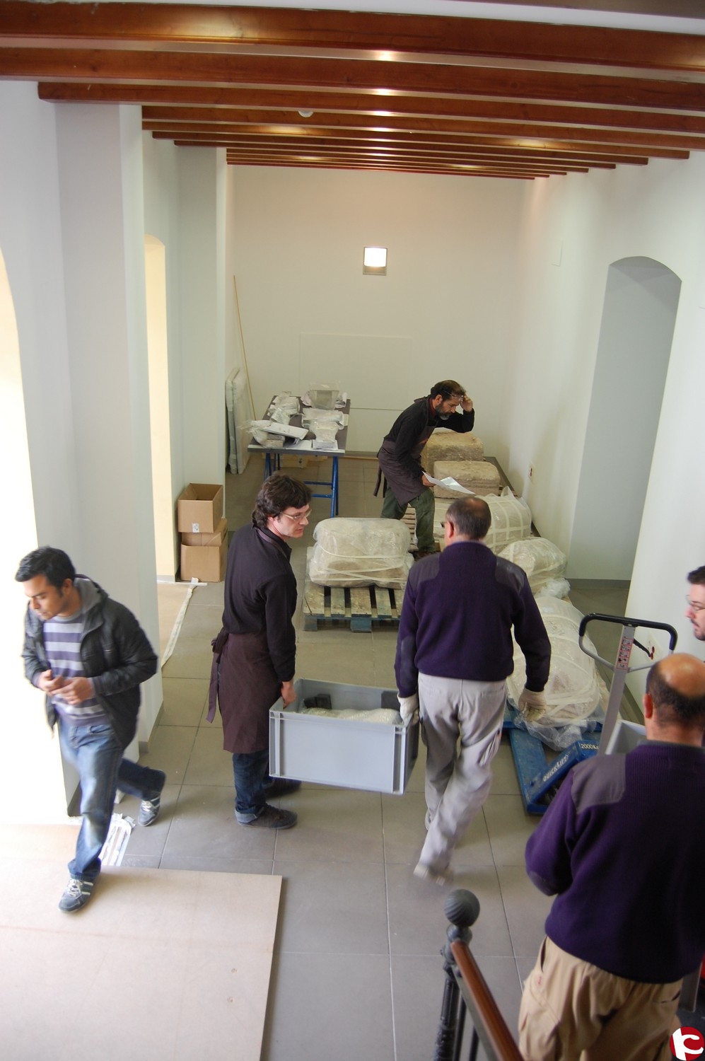 El traslado se ha llevado a cabo por los técnicos del MARQ y los operarios municipales, bajo la supervisión de la empresa encargada del proyecto de musealización Tiquitoc y Empty y durante el proceso de descarga en el museo, la alcaldesa, Antonia Cervera ha acudido para comprobar el estado de las piezas y los avances en el interior del museo.