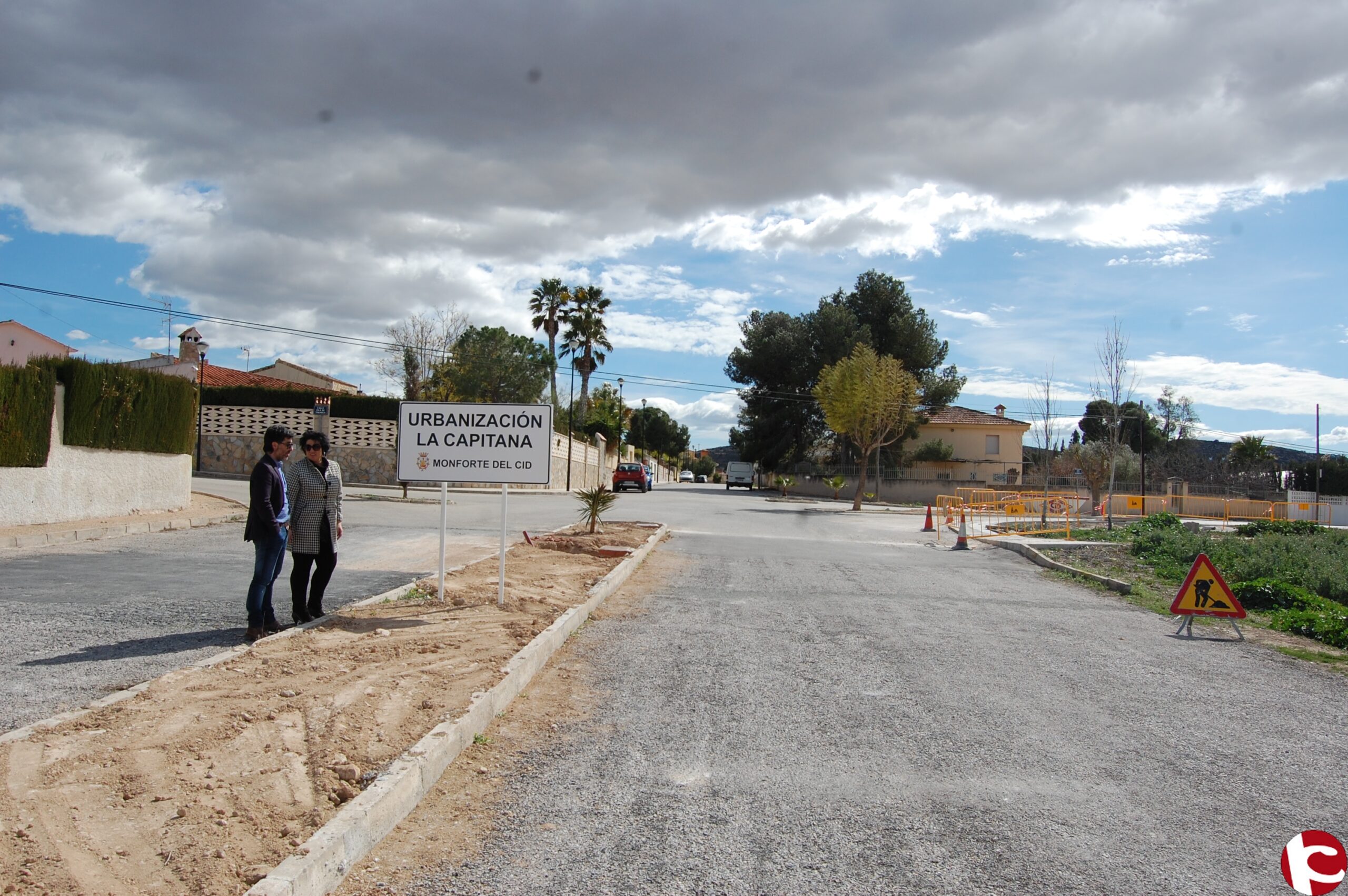 La alcaldesa de Monforte, Antonia Cervera ha visitado hoy las obras de mantenimiento que se están realizando en la Urbanización La Capitana de Orito, donde se están llevando a cabo actuaciones como la pavimentación de aceras, señalización, instalación de nueva red de alumbrado en diversas calles, así como ajardinamiento de algunas zonas.