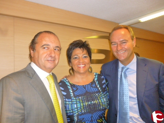 La alcaldesa de Monforte del Cid, Antonia Cervera, en la sede del Partido Popular en Alicante junto a Joaquín Ripoll y Alberto Fabra, presidente de la Generalitat Valenciana