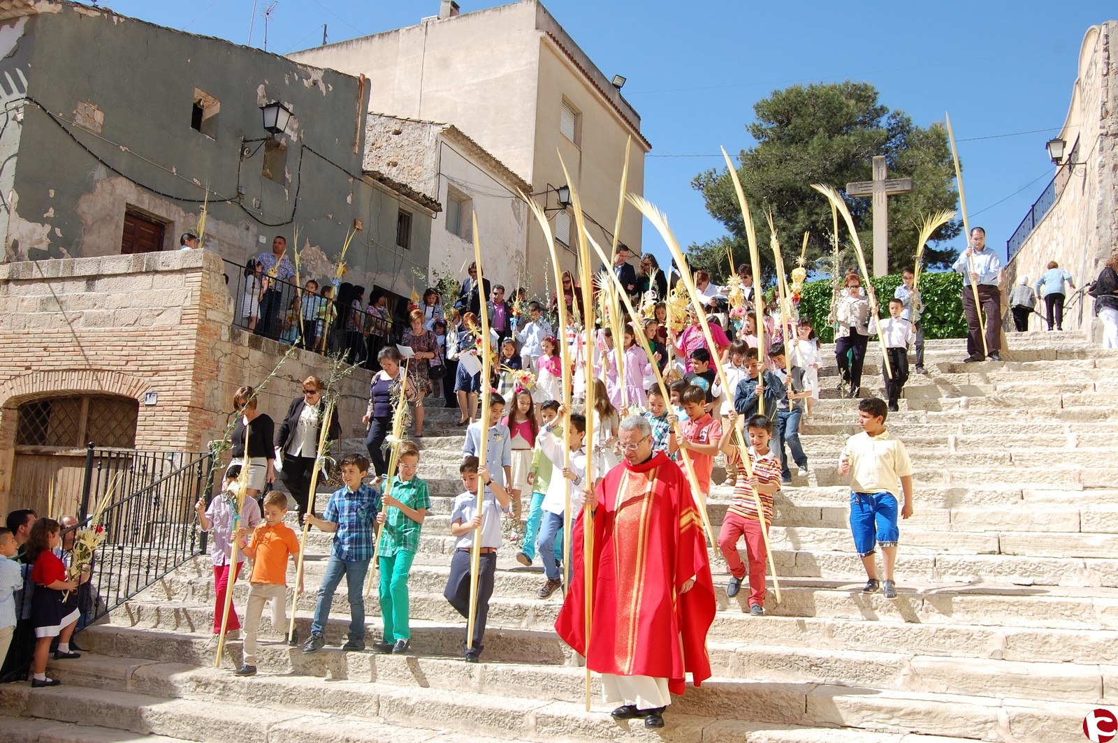 Monforte, 14 de ABRIL. Alrededor de 500 personas han participado en la procesión del Domingo de Ramos en Monforte del Cid. En las escaleras de la Iglesia Nuestra Señora de las Nieves el párroco llevó a cabo la tradicional bendición de los ramos, para a continuación proceder al recorrido entre la Plaza de España y la Plaza de San Pascual.