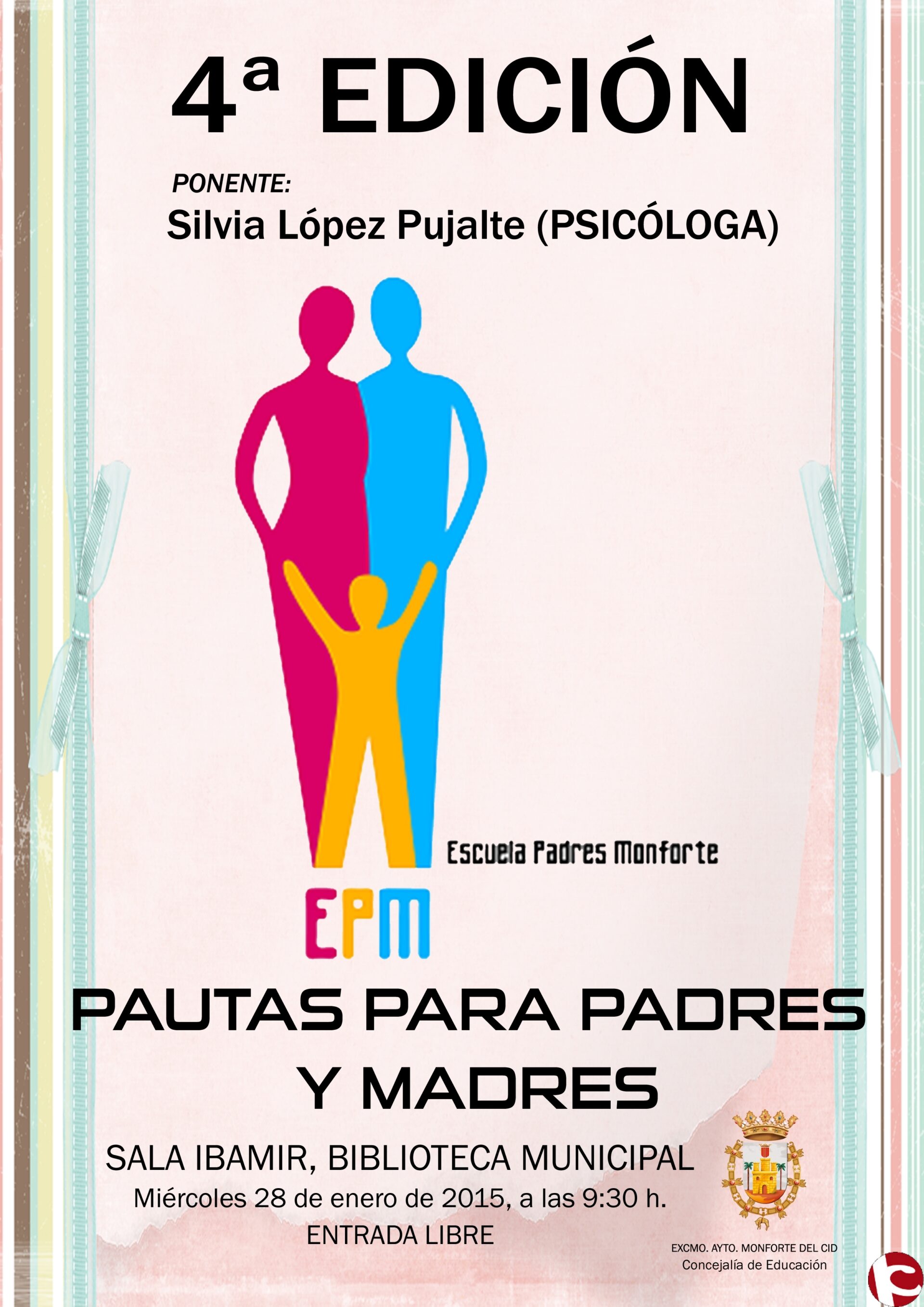 Monforte, 26 de enero. El Ayuntamiento de Monforte del Cid ha puesto en marcha la cuarta edición de la Escuela de Padres para atender las necesidades de los padres que llevan a sus hijos a la Escuela Infantil y al colegio público, tras la buena acogida de años anteriores.