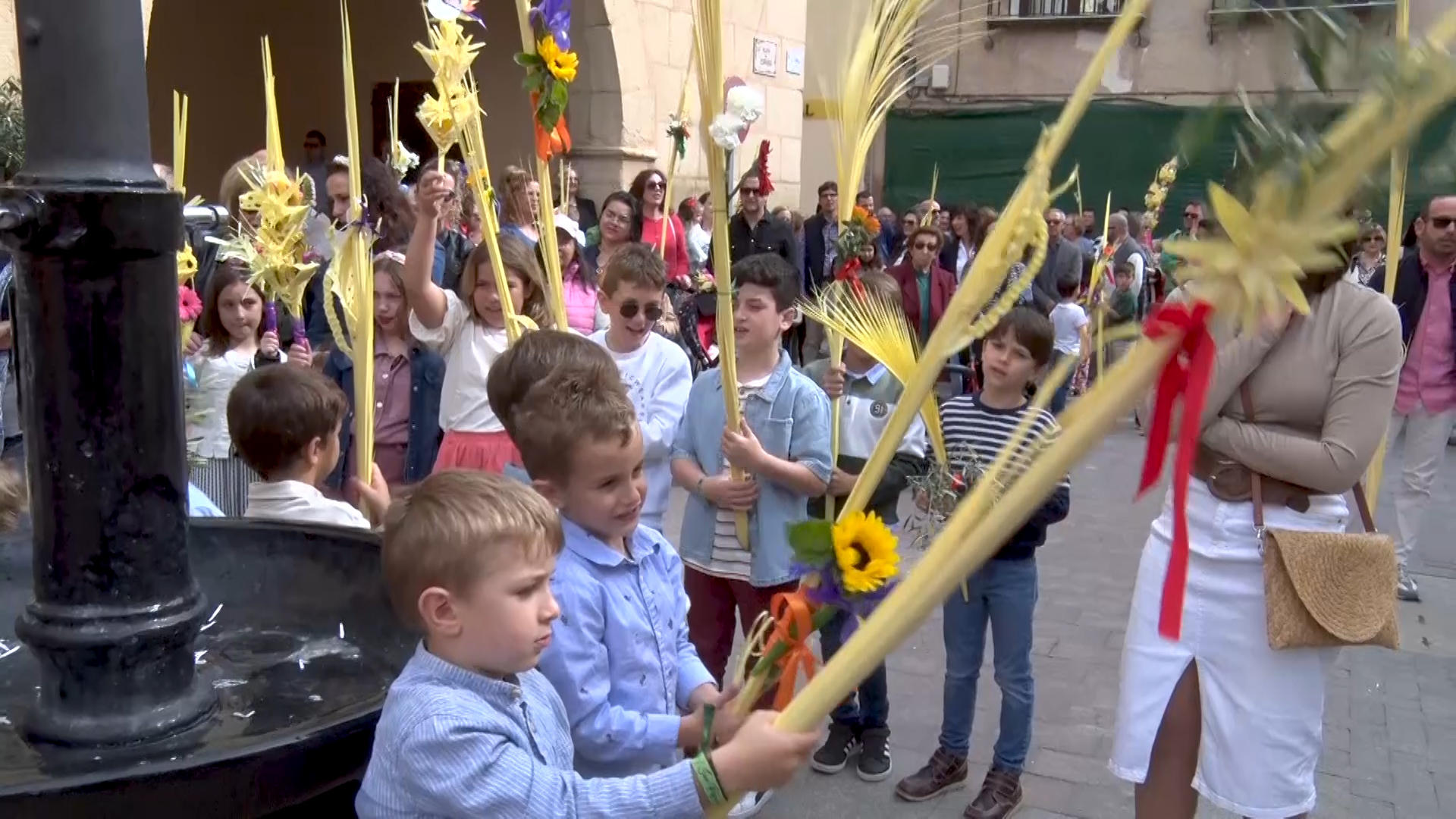 En las escaleras de la Iglesia Nuestra Señora de las Nieves el párroco ha llevado a cabo la tradicional bendición de los ramos, para a continuación proceder al recorrido entre la Plaza de España y la Plaza de San Pascual.