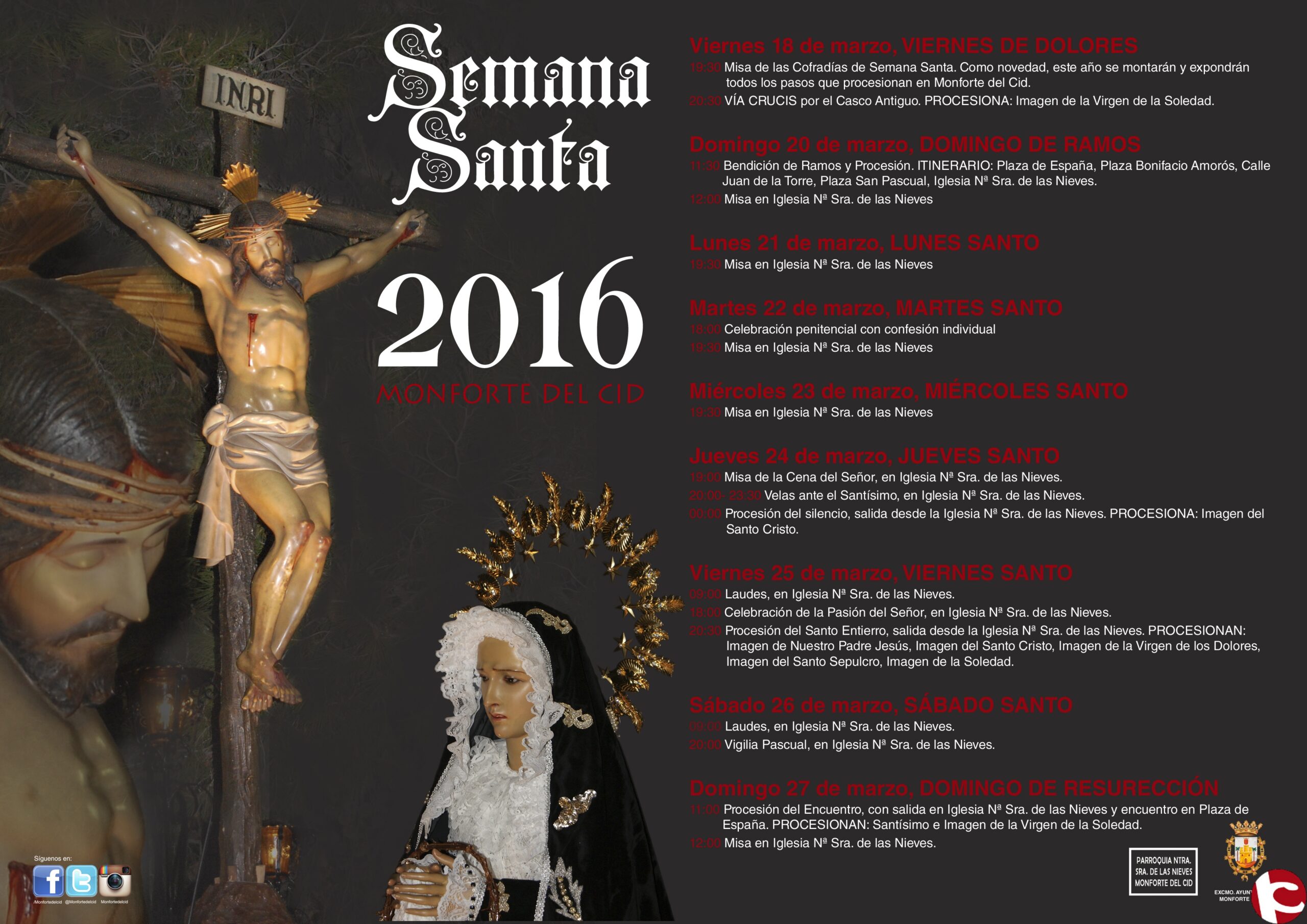 Este año, por primera vez, el Ayuntamiento de Monforte del Cid ha editado un folleto con la programación de los actos organizados desde la Parroquia Nª Sra. de las Nieves con la colaboración de las cofradías.