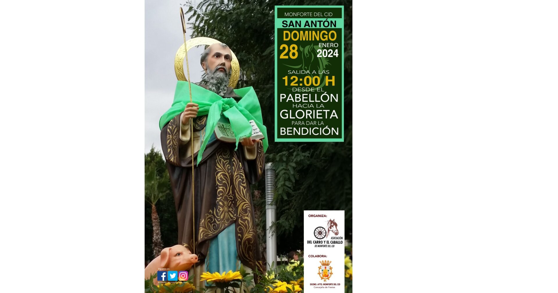 En el marco de las festividades en honor a San Antón, patrón de los animales, la Asociación del Carro y Caballo de Monforte del Cid, en colaboración con la concejalía de Fiestas, se complace en invitar a todos los residentes y visitantes a participar en la Romería y Bendición de Animales que se llevará a cabo el próximo domingo 28 de enero de 2024.