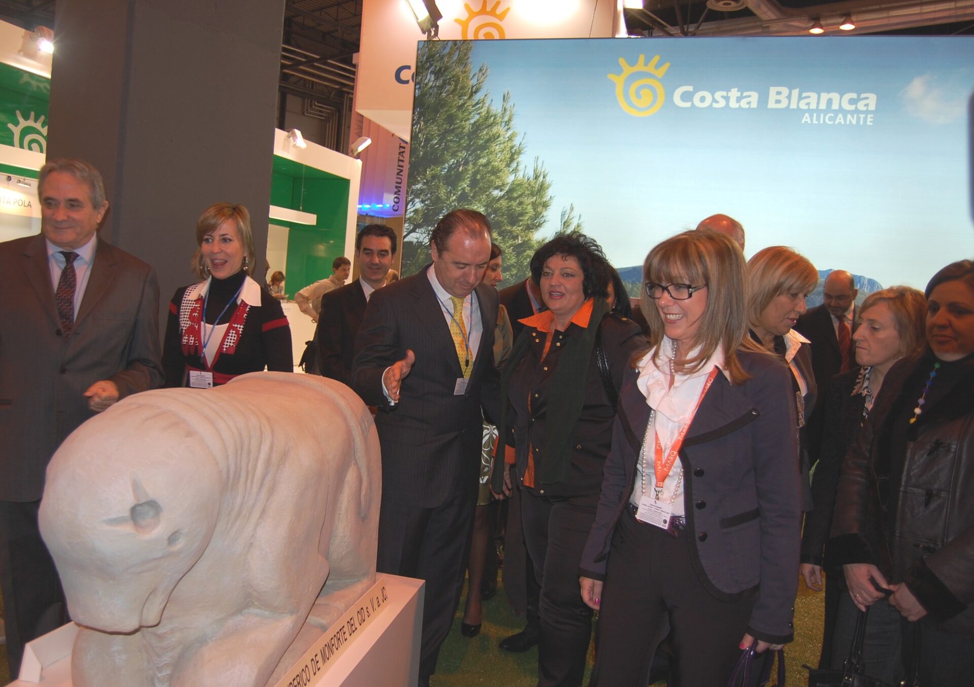 Imágenes de Antonia Cervera, alcaldesa de Monforte del Cid junto al presidente de la Diputación José Joaquín Ripoll y la vicepresidenta de la Diputación, Mari Carmen Jiménez junto a las maquetas del toro Ibérico y del Museo de Historia del municipio que se encuentran dentro del stand de Costa Blanca.