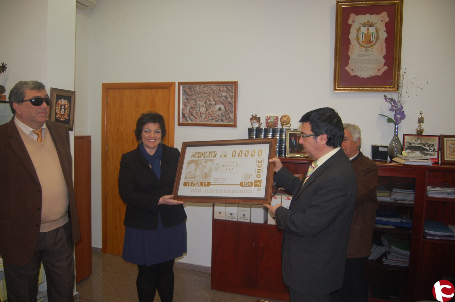 Damián Abad, ha querido hacer entrega a la alcaldesa como recuerdo de una réplica ampliada con el número 00000 como recuerdo de esta presencia del pueblo de Monforte del Cid en este juego de azar.