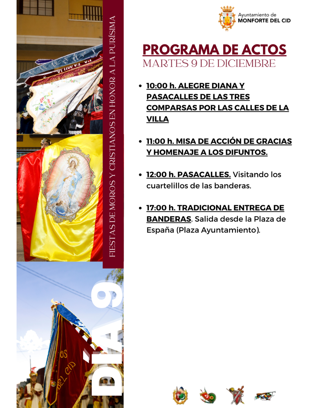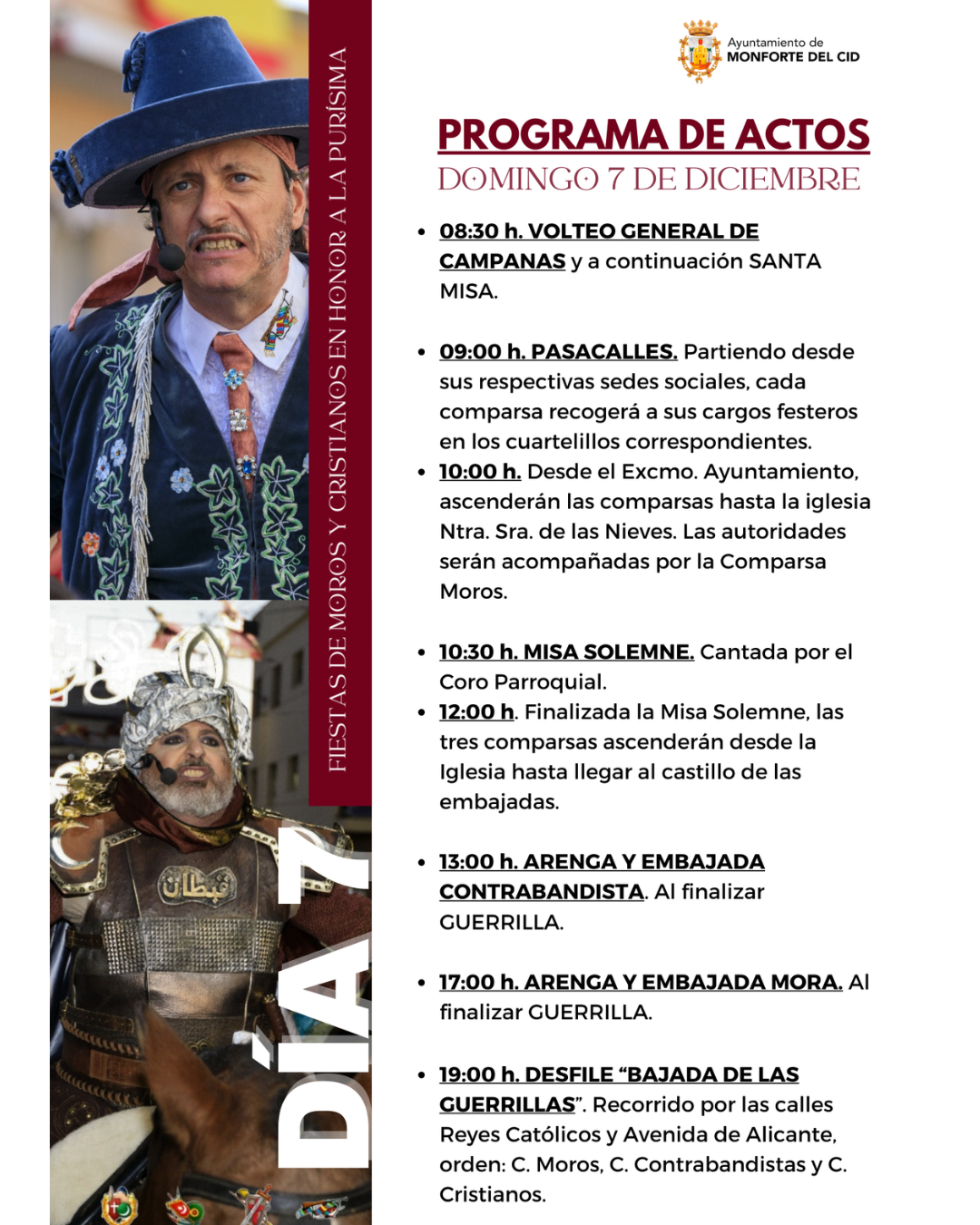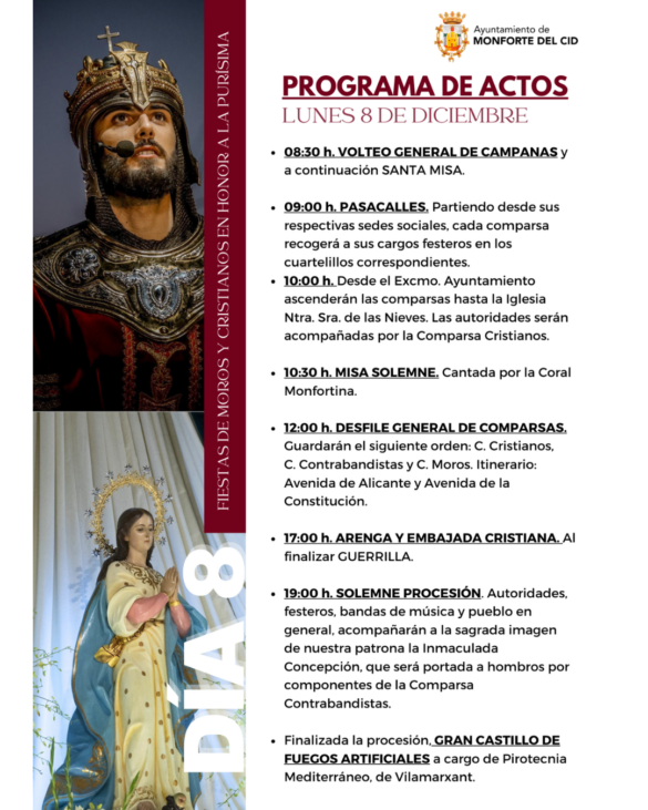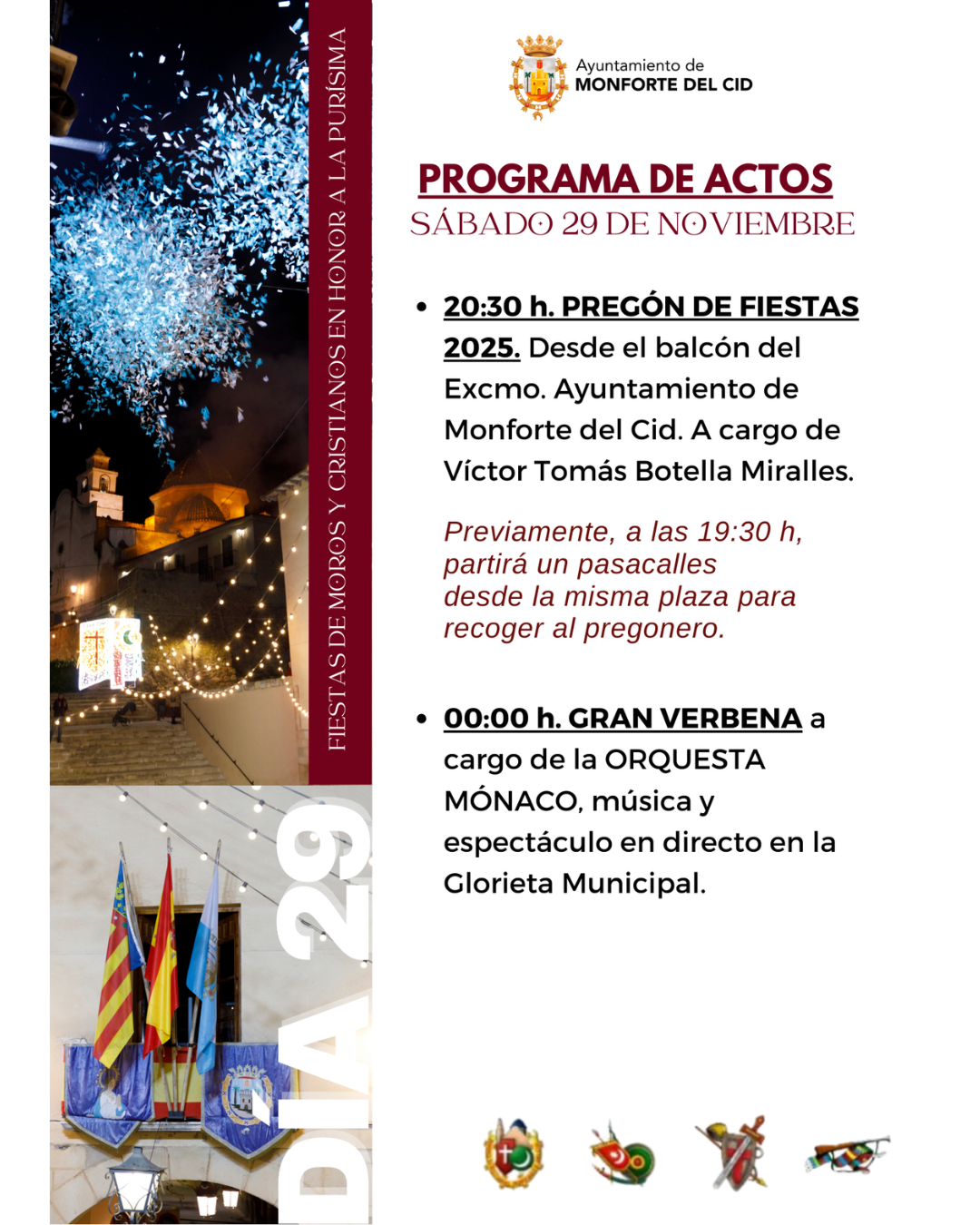• 20:30 h. PREGÓN DE FIESTAS 2025. Desde el balcón del Excmo. Ayuntamiento de Monforte del Cid. A cargo de Víctor Tomás Botella Martínez.