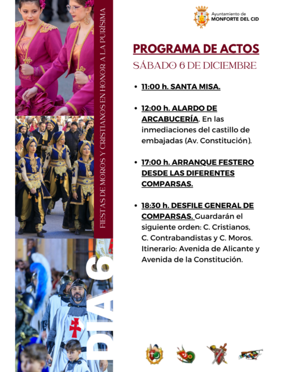Durante estas fechas, el municipio vivirá intensamente sus Fiestas de Moros y Cristianos en honor a la Purísima, unas celebraciones que cuentan con dos días festivos, el 6 y el 8 de diciembre, lo que favorecerá la participación y la afluencia de público.