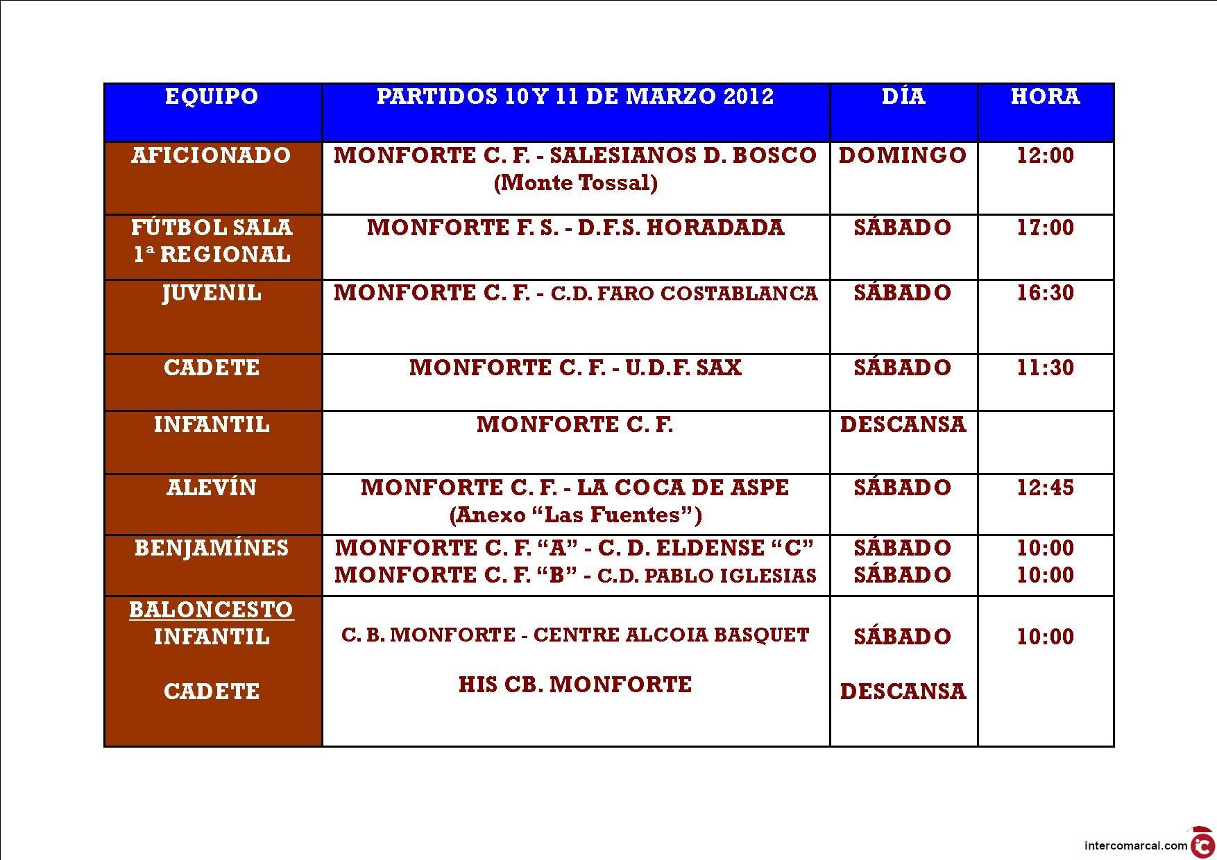 Partidos de este fin de semana de equipos de Monforte del Cid. Adjuntamos horario de equipos monfortinos para este fin de semana.