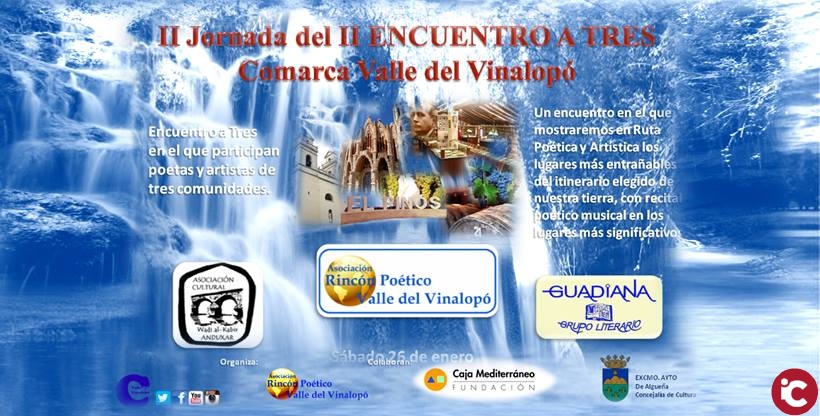El 26 y 27 de enero, se realizarán en algunos pueblos de nuestro Valle unas jornadas poéticas en la que participan poetas y artistas de tres comunidades; es una iniciativa que viene de Juan José González presidente de la Asociación Cultural Wadi al-kavir Anduxar de Jaén.