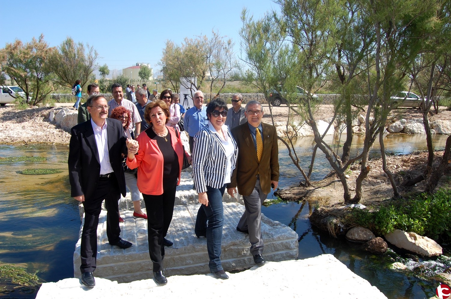 Los alcaldes de Novelda, Crevillente, Aspe y Monforte han acudido hoy al paso abierto por el río vinalopó situado junto a la Estación Depuradora de Monforte y que permite recuperar el antiguo Camino de San Pascual.