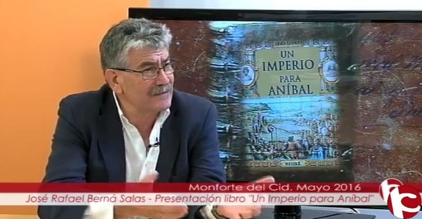 José Rafael Berná Salas ha presentado en los estudios de Intercomarcal TV su libro «Un imperio para Anibal». El autor, nacido en Monforte del Cid, ha escrito ya dos novelas más. y es autor de numerosos relatos, cuentos, poemas y pequeñas obras teatrales.