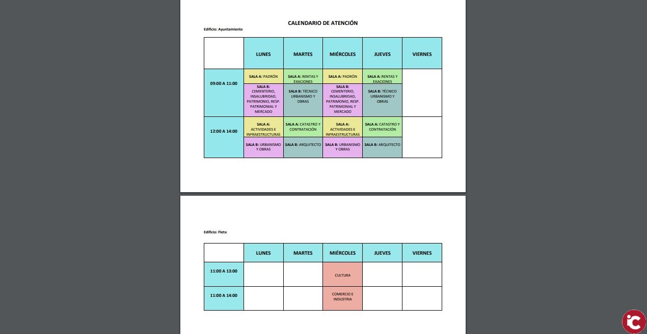 Lunes y miércoles de 11: 00 a 14:00, Actividades e Infraestructuras, Urbanismo y Obras.