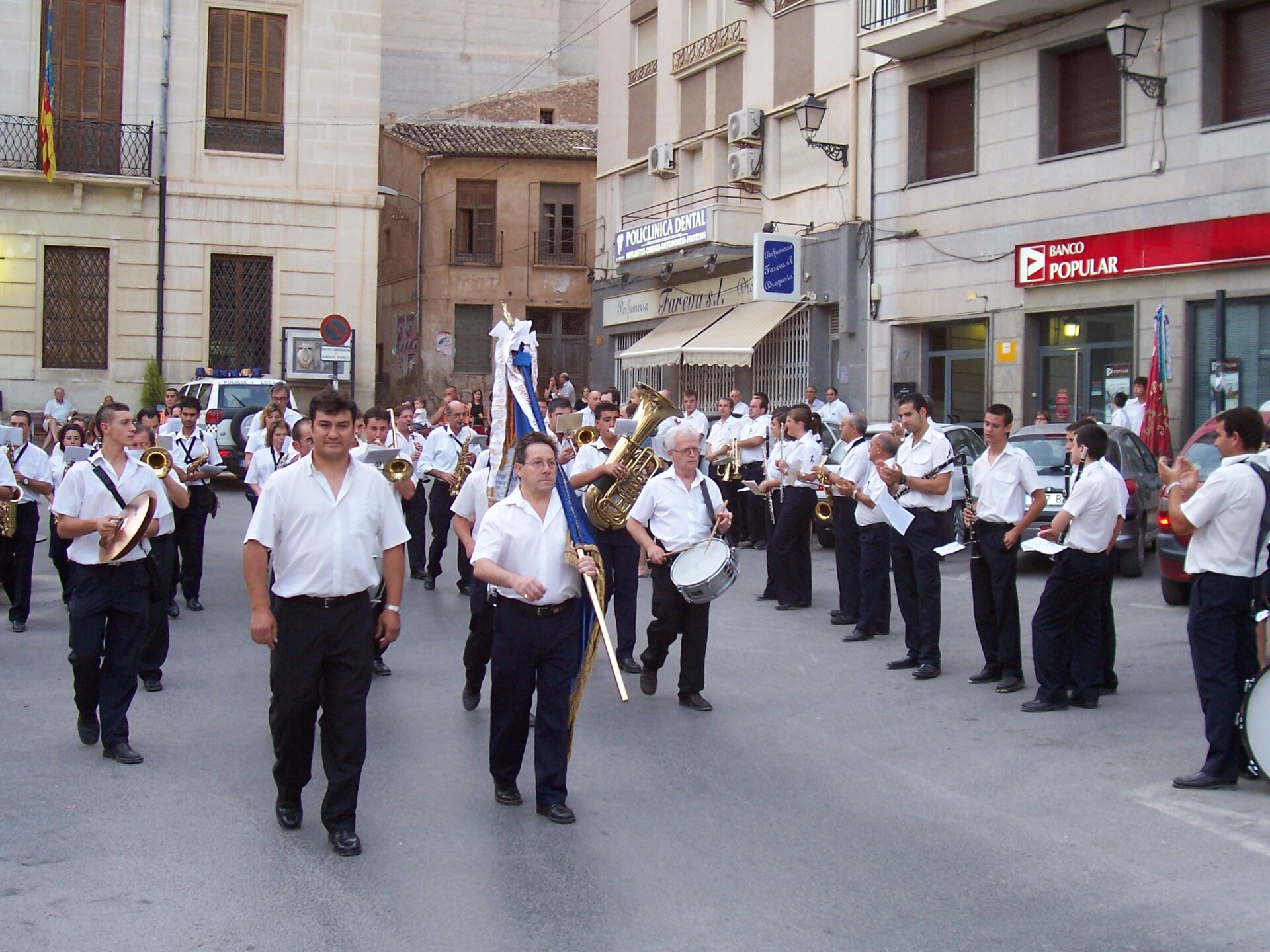 Pero antes de llegar ahí, a la actuación desde el albero de la plaza de toros monovera, las dos bandas, La Artística y Sones de Sax, habían recorrido buena parte de la calle Mayor. En concreto desde la puerta del Ayuntamiento hasta la plaza de toros. A las nueve, e incluso antes, con una puntualidad más que británica, la agrupación de Monóvar recibía a sus colegas sajeños a las mismas puertas del edificio consistorial, en plena plaza de La Sala, para a continuación iniciar el pasacalles que abrió Sones de Sax. A continuación, y entre un acompañamiento de aplausos, la banda monovera inició el camino.