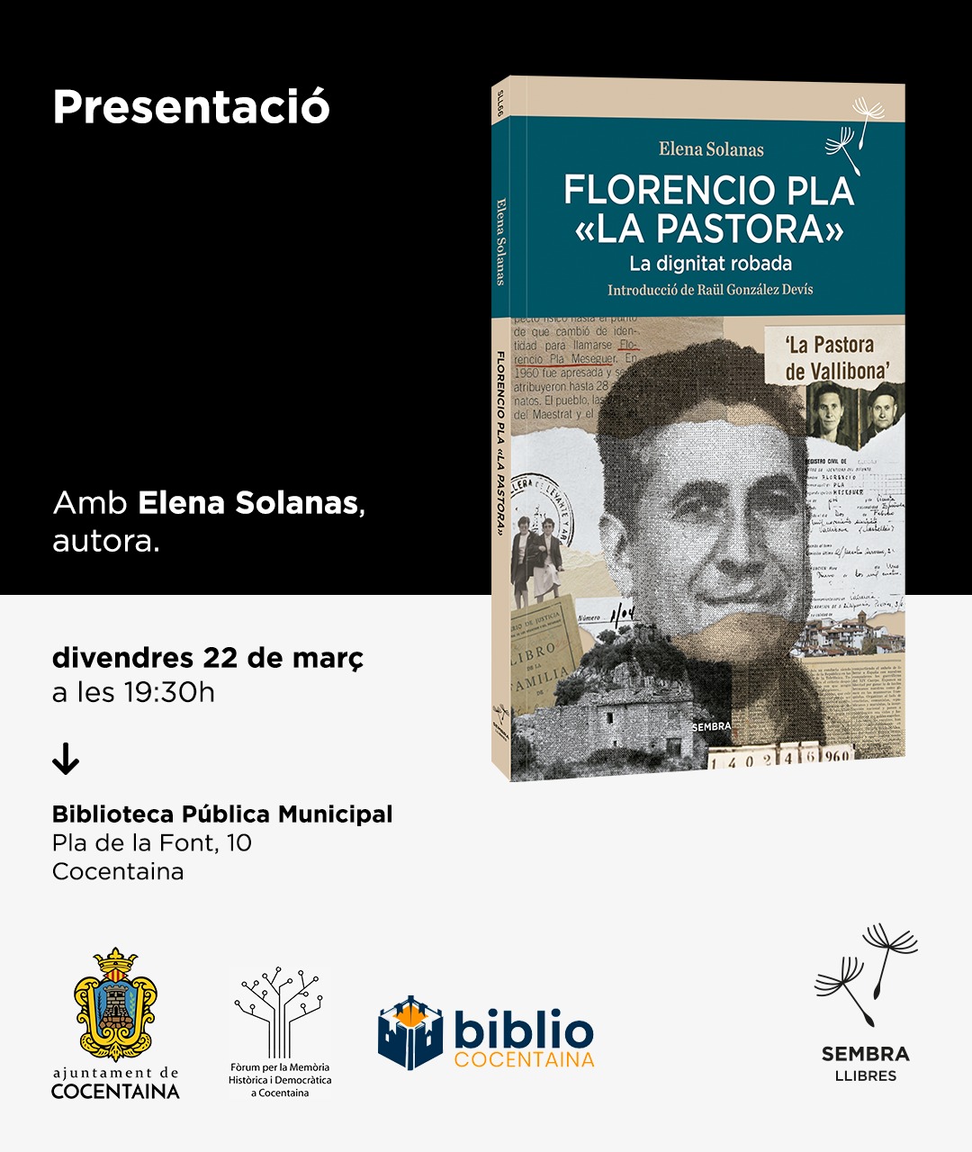 5 de març: Amb motiu del Dia de la Dona, la Biblioteca Municipal de Cocentaina acollirà la presentació del llibre Indignas hijas de su patria, un acte que compta amb la participació del Col·lectiu 8 de Març de l’Alcoià i el Comtat i que anirà acompanyat d’una xarrada a càrrec de les seues autores, Marta García i Maria Palau. La cita començarà a les 19:30 hores.
