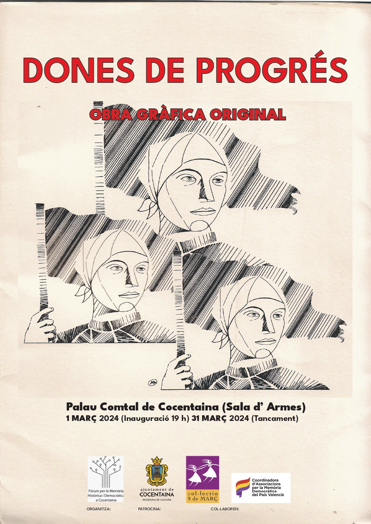 El Fòrum per la Memòria Històrica i Democràtica a Cocentaina vos convida a assistir a les diferents activitats que es portaran a terme durant els primers dies del mes de març. El programa contempla l’exposició ‘Dones de progrés’ en el Palau de Cocentaina, la presentació i xarrada del llibre Indignas hijas de su patria i l’inici del Cicle de Cinema sobre la Transició.