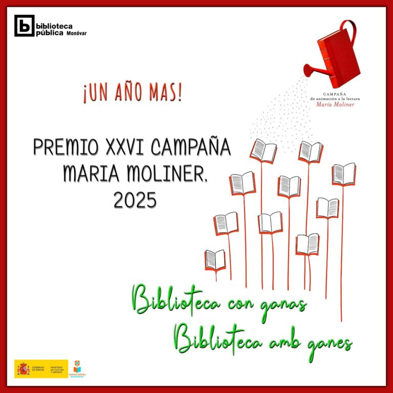 La Campanya “María Moliner”, impulsada per la Direcció General del Llibre i Foment de la Lectura, reconeix anualment les millors iniciatives de promoció lectora en biblioteques públiques de municipis menors de 50.000 habitants. En aquesta edició han estat premiades 331 biblioteques d’arreu d’Espanya, entre les quals, una vegada més, figura la de Monòver.