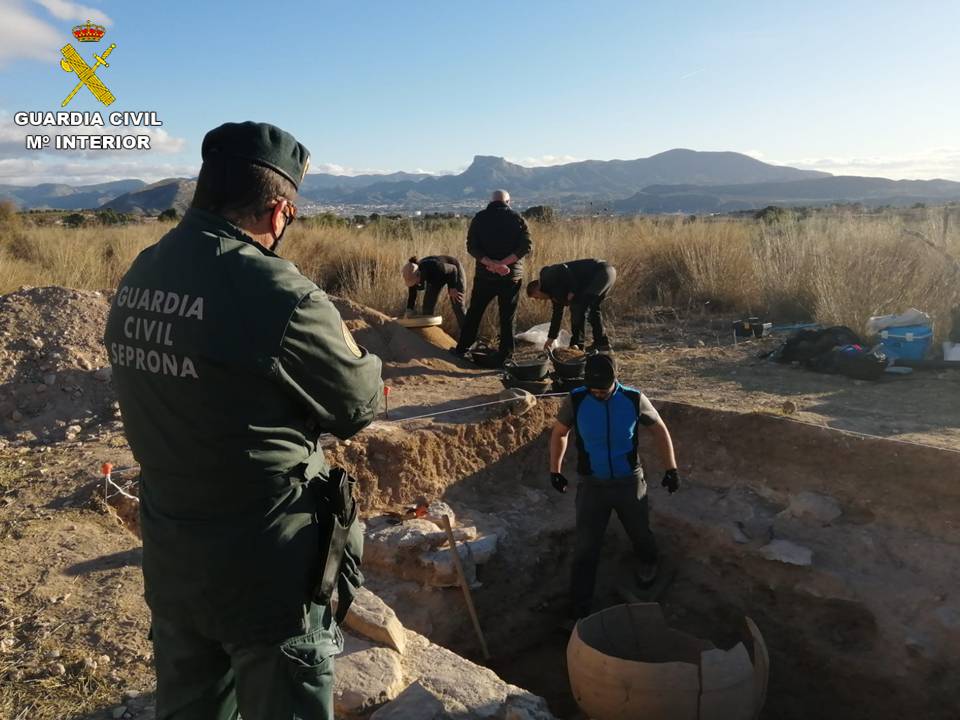 Todo se inició el pasado mes de julio, cuando un ciudadano acudió al Servicio de Protección de la Naturaleza (SEPRONA) de la Guardia Civil de Monóvar para explicar a los agentes que mientras realizaba tareas agrarias en su parcela, había encontrado semienterrada una vasija de barro de grandes dimensiones.