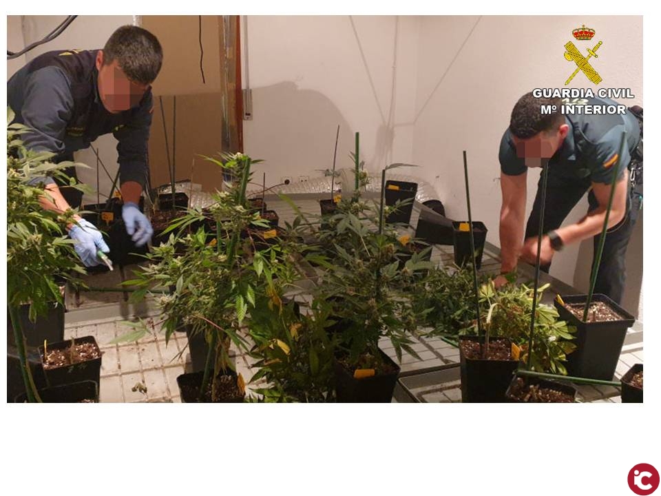 Alicante – 17/mayo/2019.- La Guardia Civil ha detenido en Monóvar a dos personas por ser las presuntas autoras de un delito contra la salud pública, por cultivo y elaboración de sustancias estupefacientes.