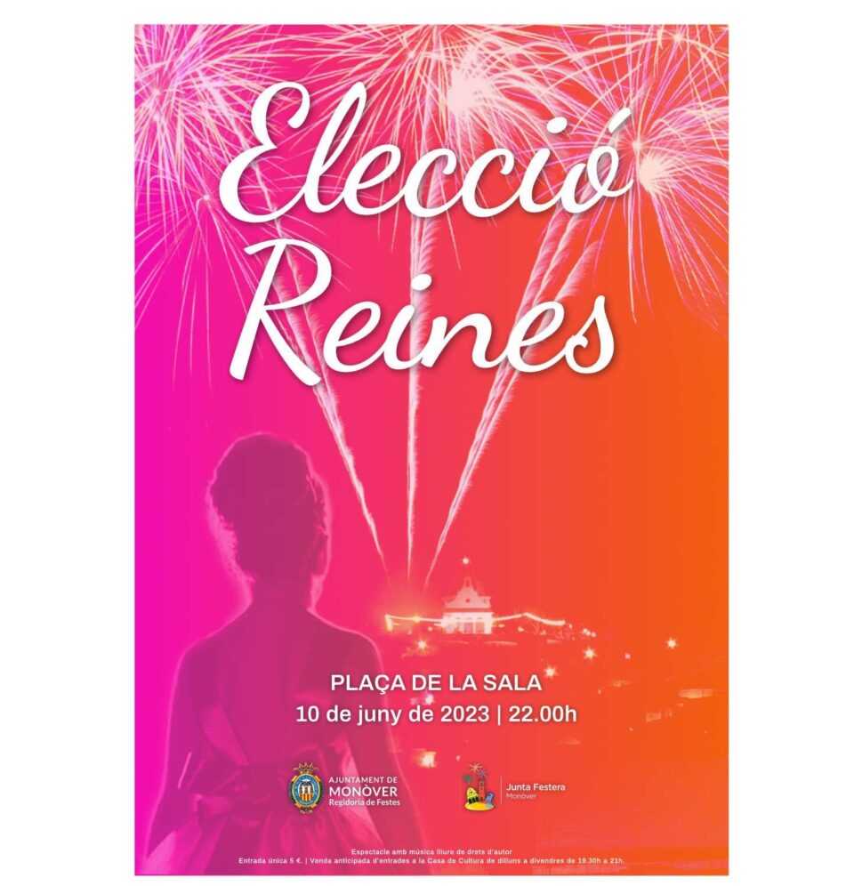 Monòver, Dimecres, 17 de maig de 2023.- La Junta Festera de Monòver i la Regidoria de Festes han anunciat que el pròxim 10 de juny de 2023 es durà a terme l’Elecció de Reines de les Festes de Setembre 2023.