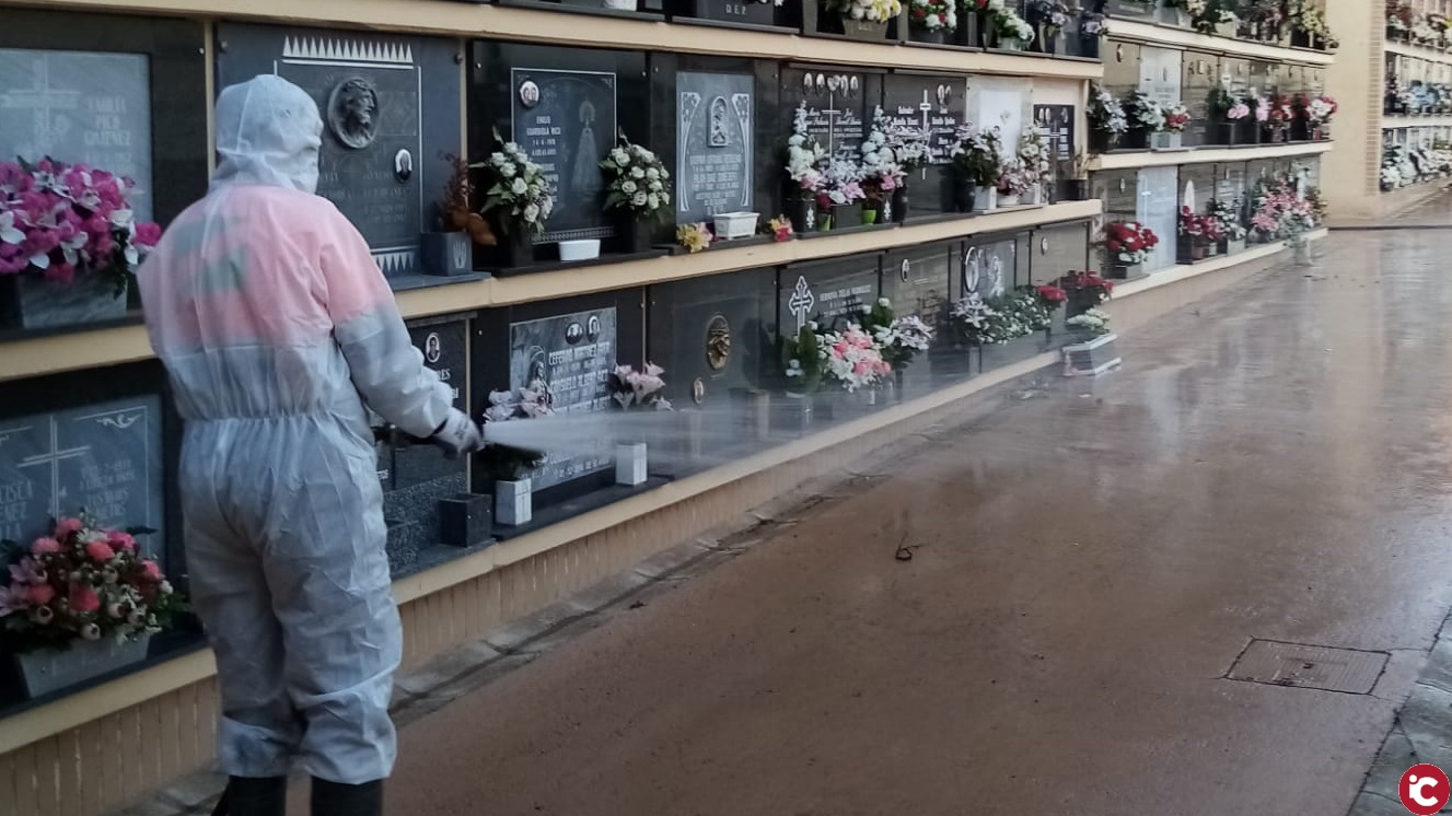 Per la seua banda, el Cementeri Municipal també és objecte d’intenses desinfeccions. Així, es procedeix a polvoritzar tant els accessos al recinte com els carrers de l’interior. En aquest sentit, Giménez recorda “que per accedir al camp sant cal portar mascareta, seguir les normes d’higiene de l’entrada i l’horari d’obertura és, de dilluns a diumenge, des de les 9 del matí fins a les 13 de la vesprada”.