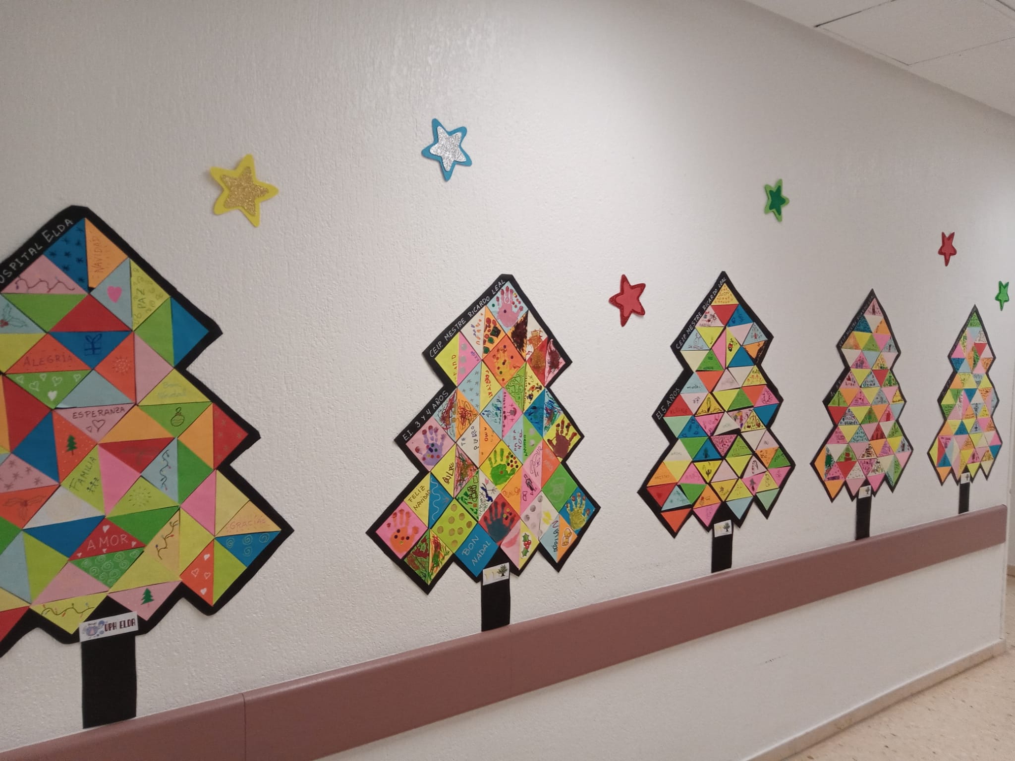 Las alumnas y alumnos del CEIP Mestre Ricardo Leal de Monóvar, junto con la Unidad Pedagógico Hospitalaria han colaborado para realizar árboles de Navidad para desear a todos los niños y niñas del área de salud del Hospital de Elda una Feliz Navidad y una pronta recuperación.