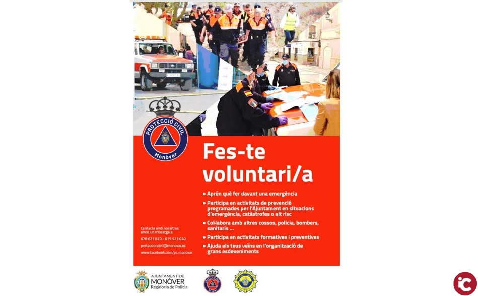A més a més, des del consistori s’aprofita aquesta data destacada per a llançar una Campanya per a sumar-se al Voluntariat de Protecció Civil. Una manera “d’obrir les portes d’aquest col·lectiu a aquelles persones que vulguen col·laborar en aquesta feina tan important per a Monòver que desenvolupen, dia rere dia, els voluntaris locals de Protecció Civil”.